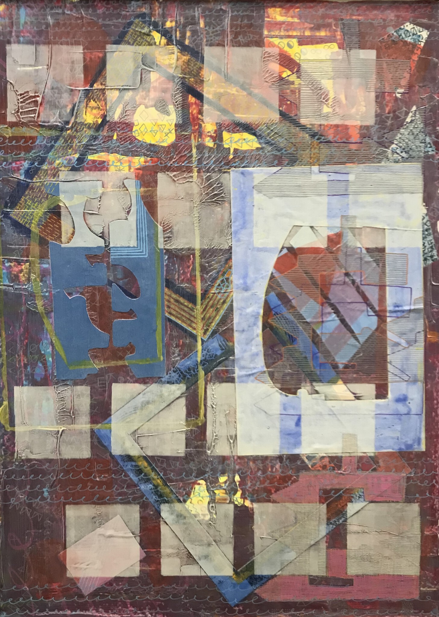 Josée Wuyts maakt hierin een compositie opgebouwd met elementen die regelmatig in steeds wisselende samenstelling in haar werken te zien zijn.