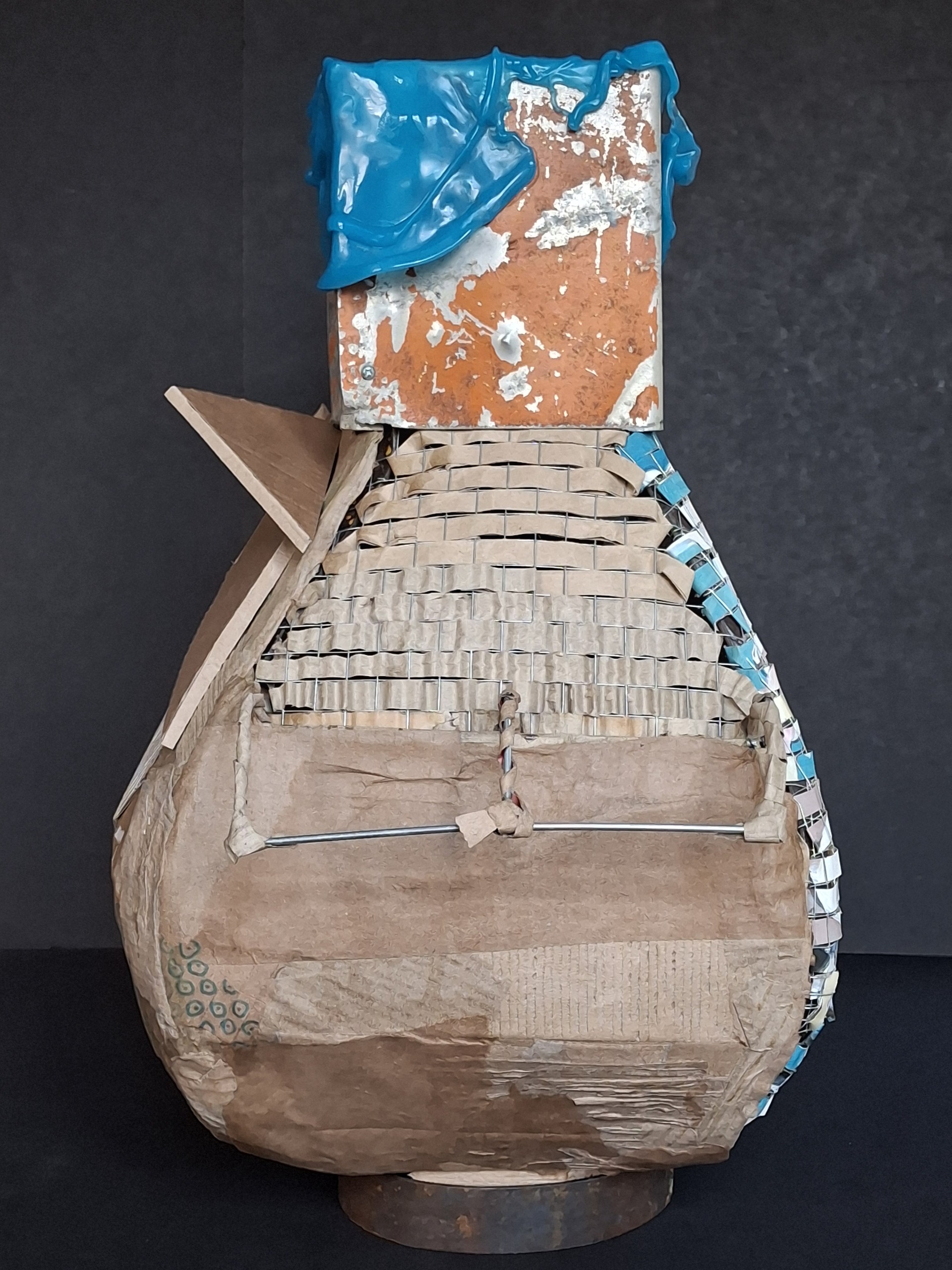 Vaas Papier 3d Object Karton Kunst Acrylverf Metaal Kleur Plastic Mixedmedia