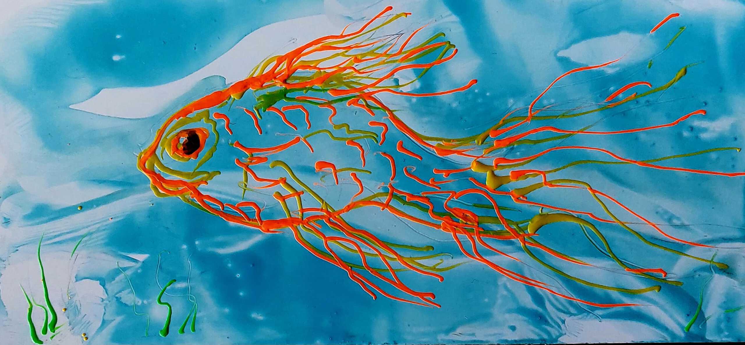 Oranje Blauw Vissen Encaustic Goudvis Bijenwas