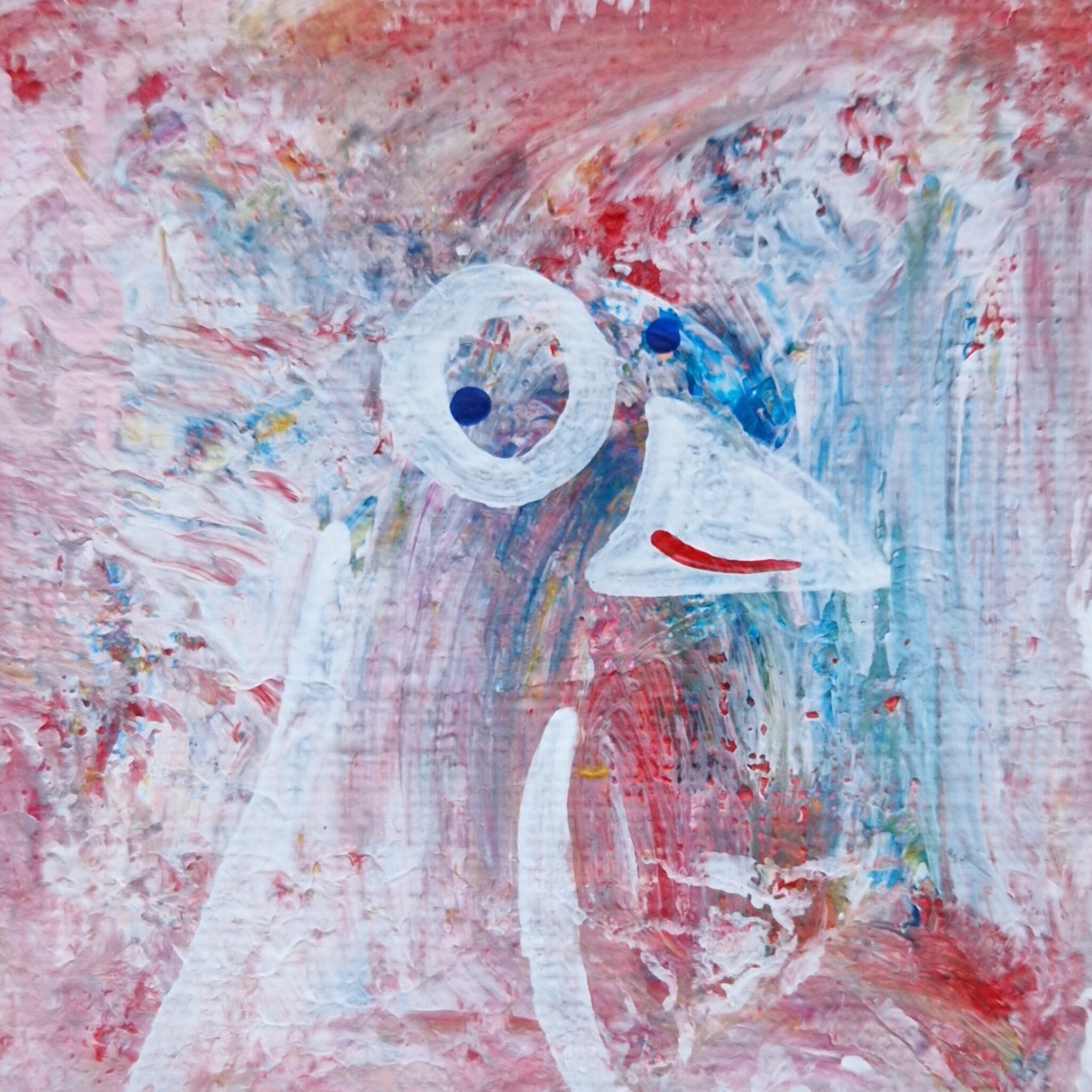 Acrylverf op katoen, 7 bij 7 cm, Pictoright. Geen ophanghaakje aan de achterkant, maar je ontvangt bij aanschaf een houten ministandaardje. Zo kun je het schilderijtje eersteklas presenteren. De prijs is exclusief verzendkosten. Als je je aanmeldt voor mijn maandelijkse gratis nieuwsbrief - zie links, onder communicatie - ontvang je bij aanschaf 10 % korting. Acrylic paint on cotton, 7 x 7 cm, Pictoright. No hanging hook on the back, but you will receive a small wooden stand with your purchase. This allows you to display the painting in a premium way. The price does not include shipping costs. If you sign up for my newsletter, see bottom left under 'contact', you will receive a 10% discount when purchasing this work.