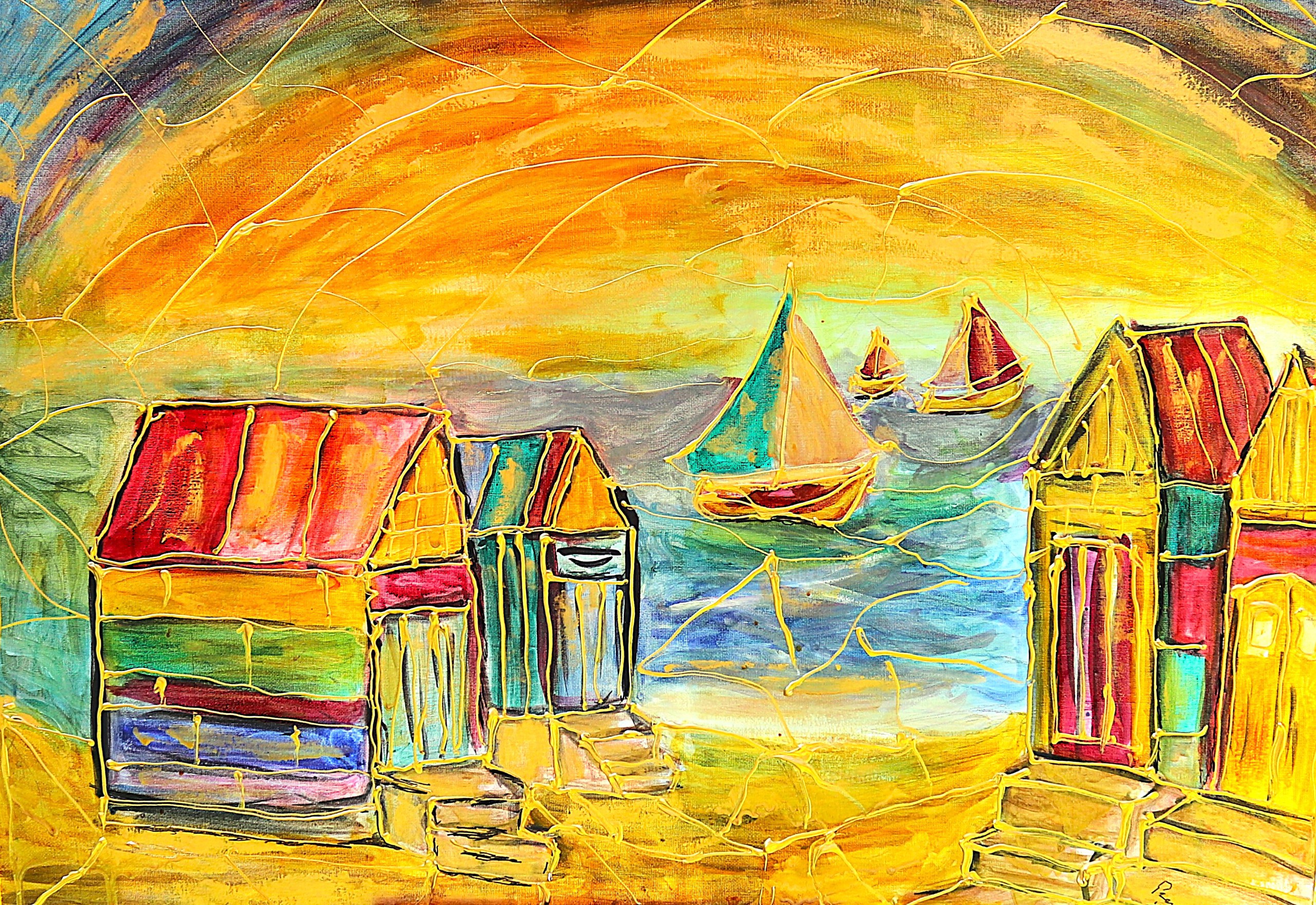 Als je vuurtorens zegt, dan denk je: strand! En als je strand denkt, dan zou een strandhuisje leuk zijn. Nou, hier zijn ze dan. Mijn fleurige vredige strandhuisjes. Lekker de deur opendoen, je stoelen eruit halen, tafeltje neerzetten, voetjes in het zijdezachte zand, gezicht in het zonnetje - La vie est belle!
