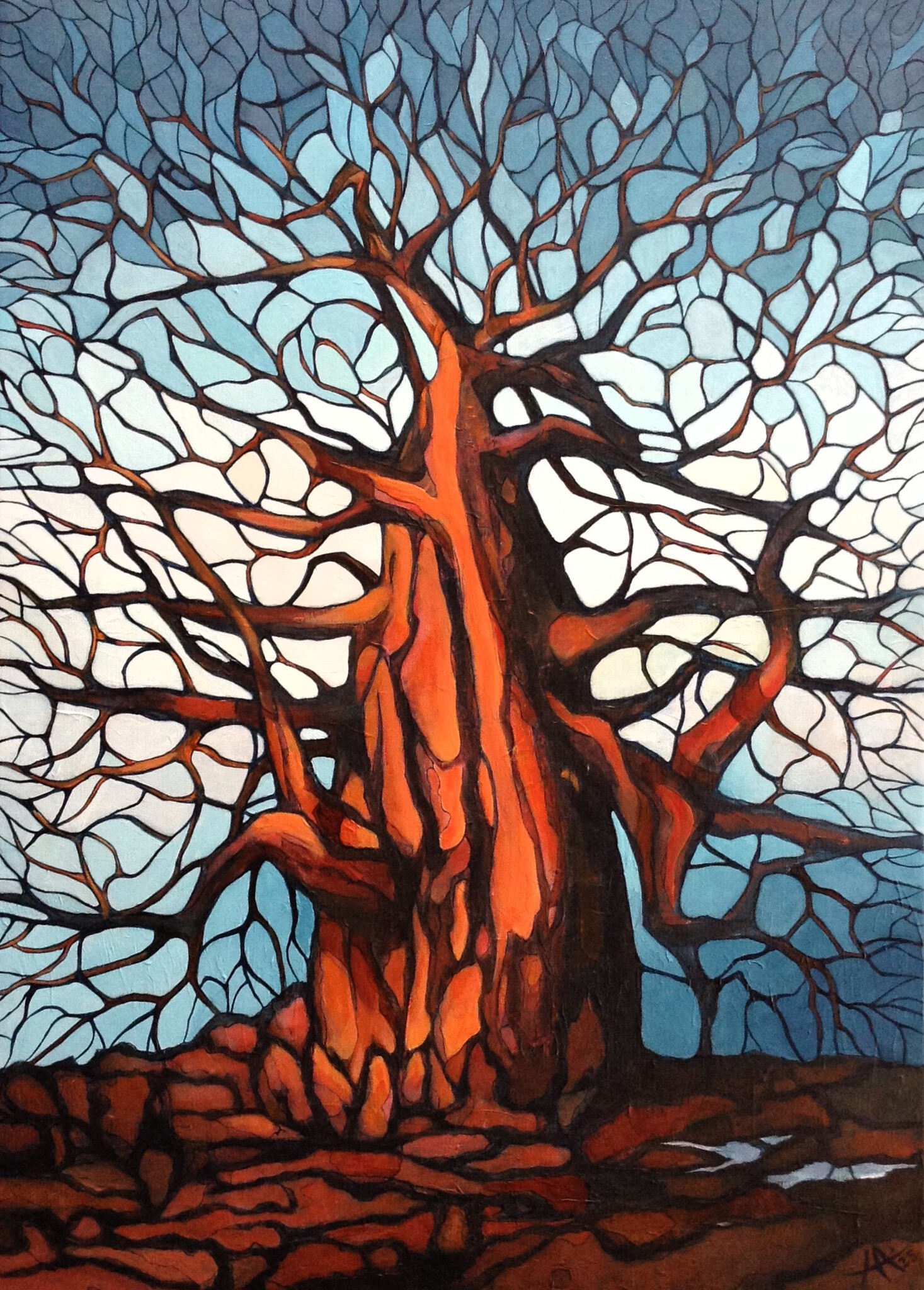 Wit Oranje Zwart Blauw Lichtblauw Boom Baobab Apenbrood