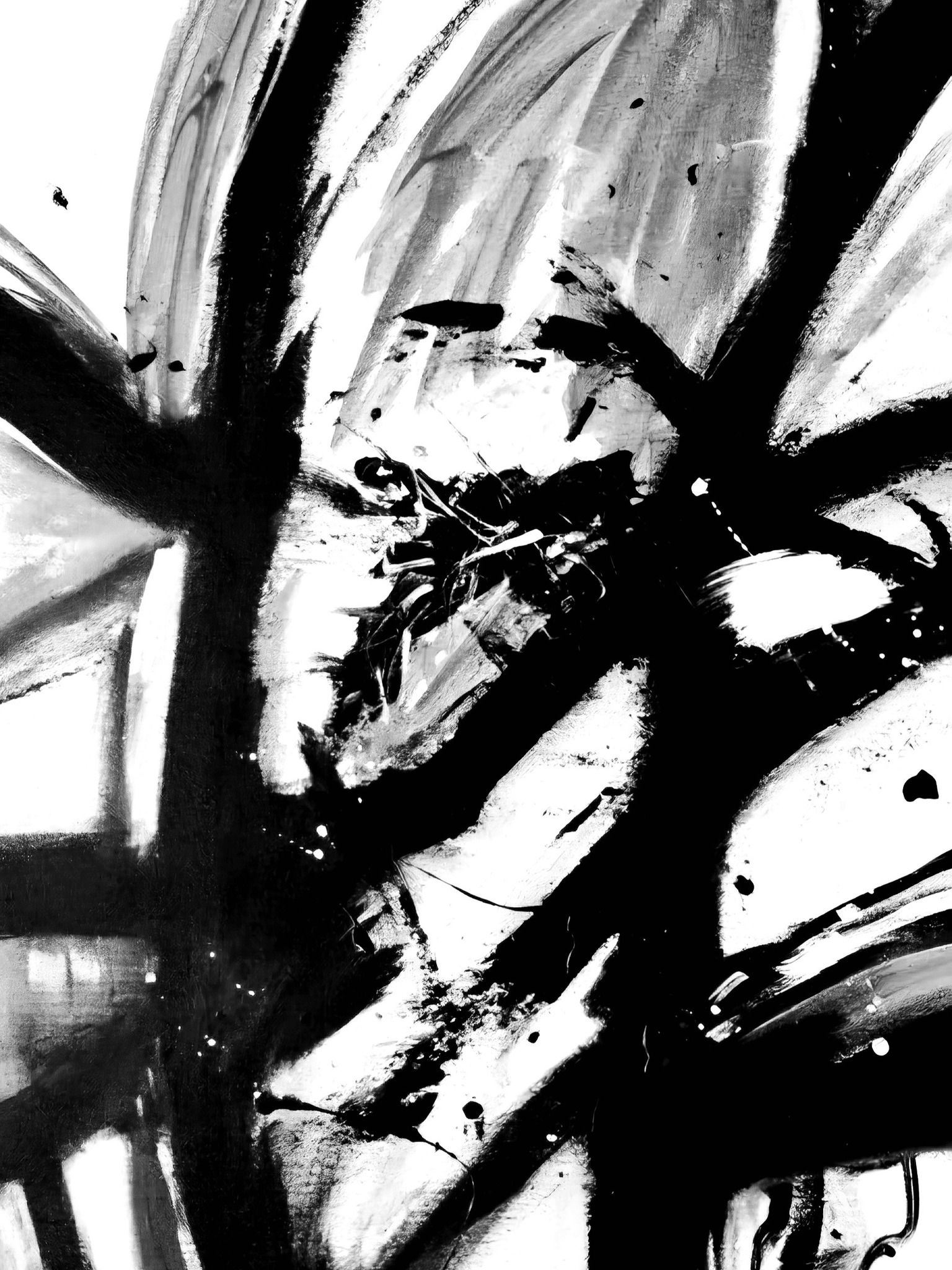 Voor Milan, mijn gewaardeerde collega die mij vroeg een schilderij voor hem te maken om een muur op te sieren in zijn pas verworven appartement. Het werd een abstract in zwart, wit en grijzen.