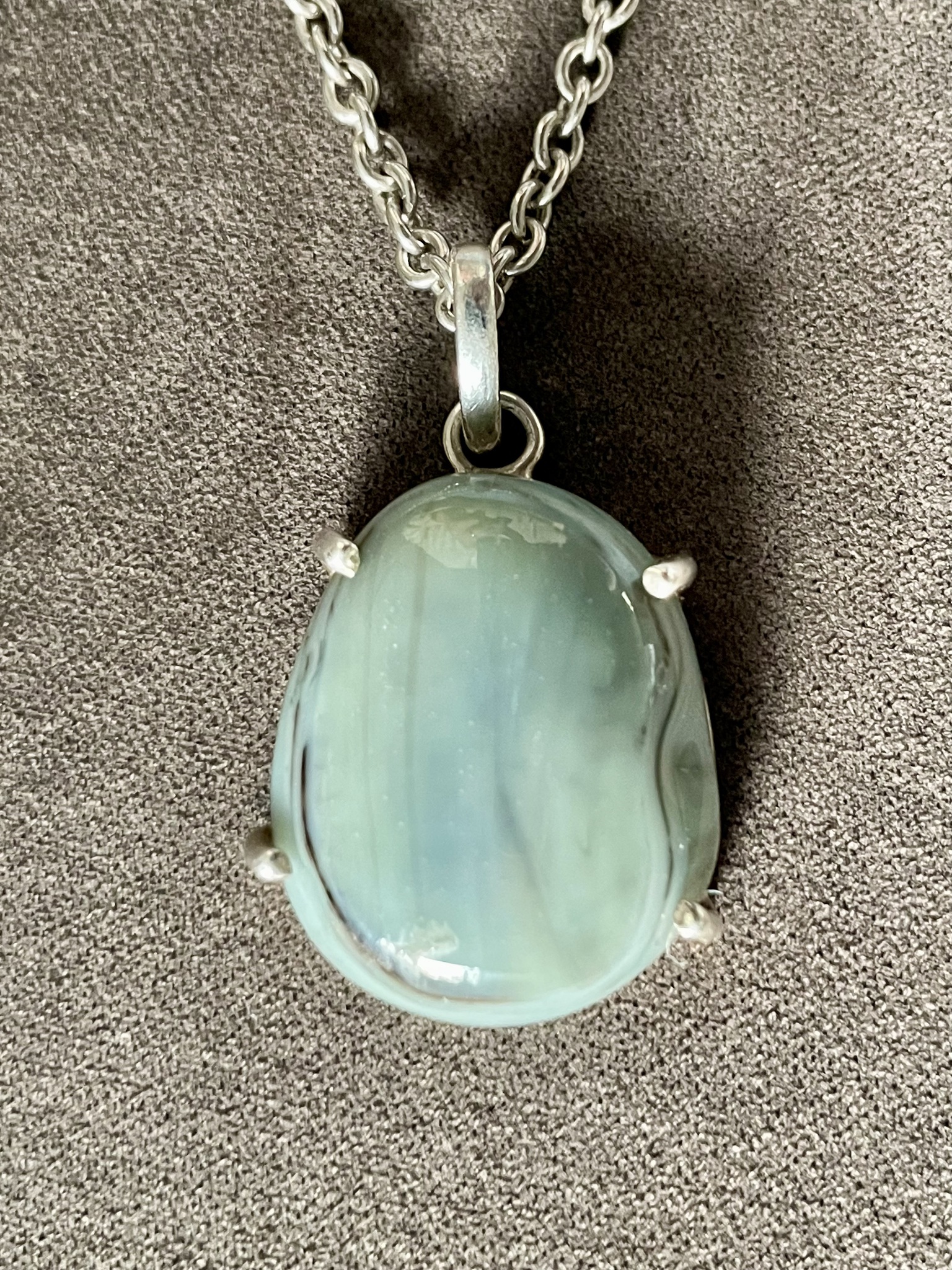 Glassteen met daarin de as van een geliefde in een zilveren pendant.