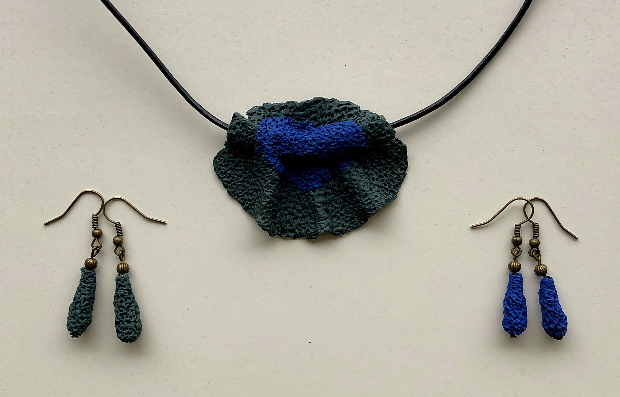 Mijn sieraden zijn handgemaakt van porseleinklei, al dan niet ingekleurd met stains. Ze zijn gestookt op 1220 graden C. Die hoge temperatuur maakt ze stevig en sterk. Ieder stuk is uniek en een klein object op zich. Mijn sieraden zijn comfortabel om te dragen en voelen aangenaam aan.