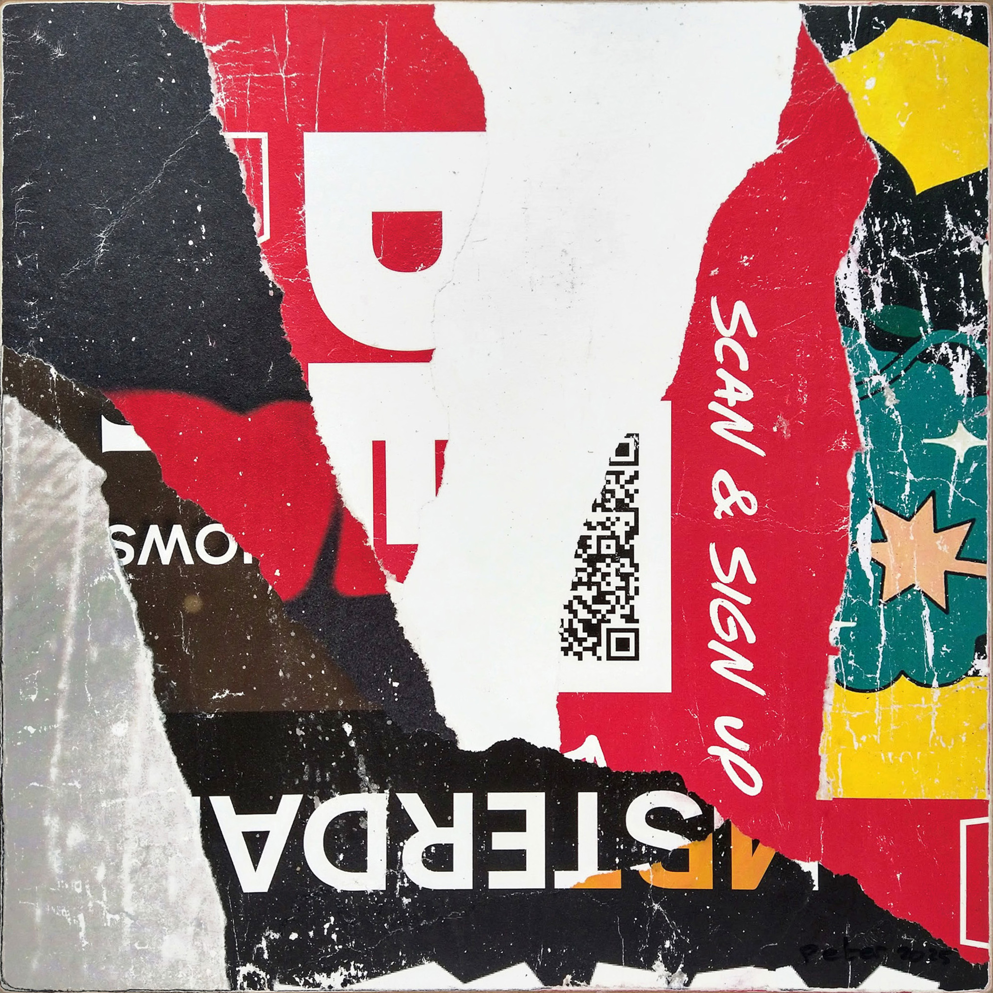 Peter Sanders is collagist. Op deze exto-website zie je zijn collages van - tijdens zoektochten in de stad - verzamelde stukken wildgeplakte aanplakbiljetten.