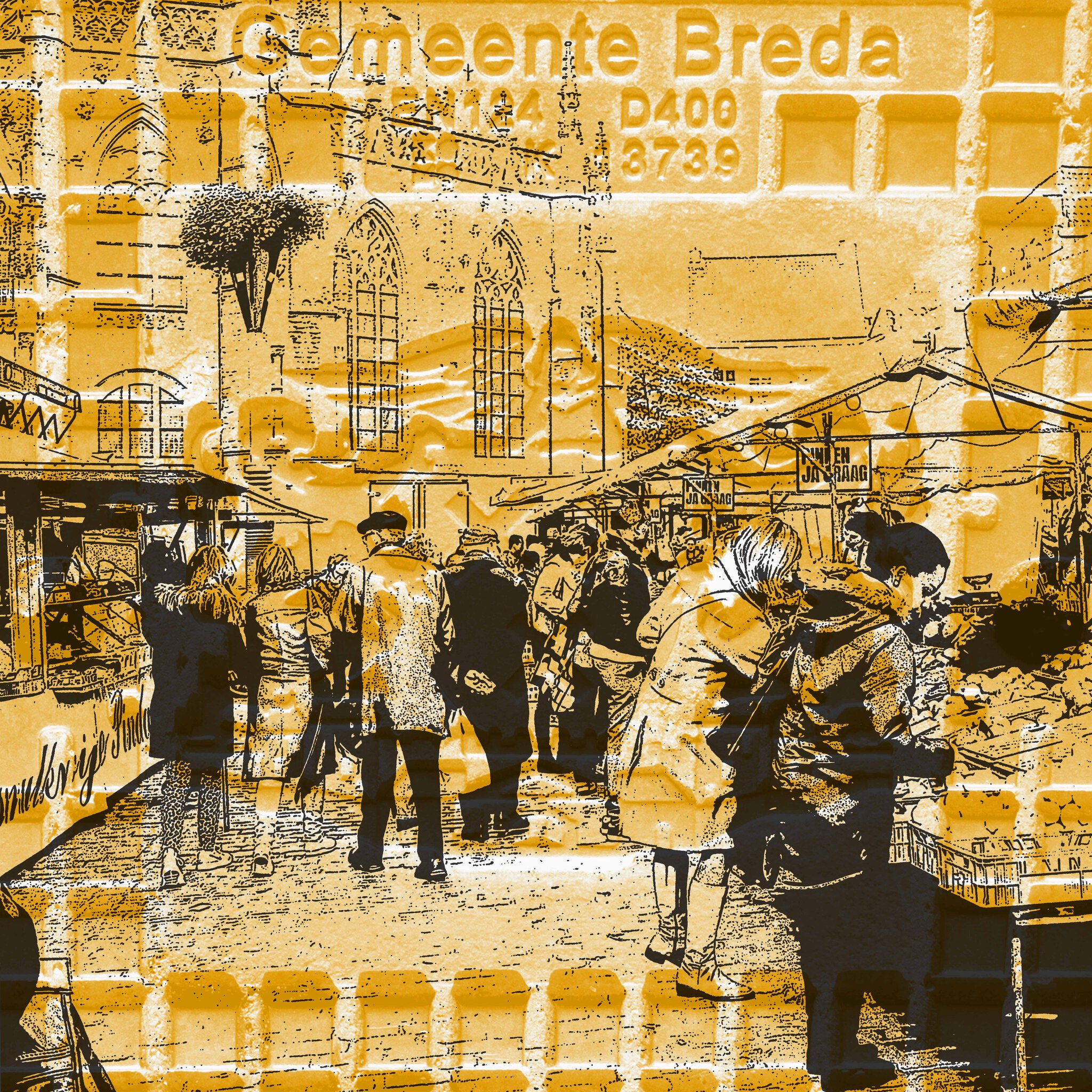 'Op de markt, Breda' * te koop digitale art print, 50 x 50 cm, prijs: € 365 (inclusief lijst, of op dibond) (diverse formaten zijn mogelijk, naar uw wens - de prijs variëert dan mee) Te huur bij Business Art Service in het formaat van 90 x 90 CM https://www.kunst.nl/kunstenaars/hilly-van-eerten/