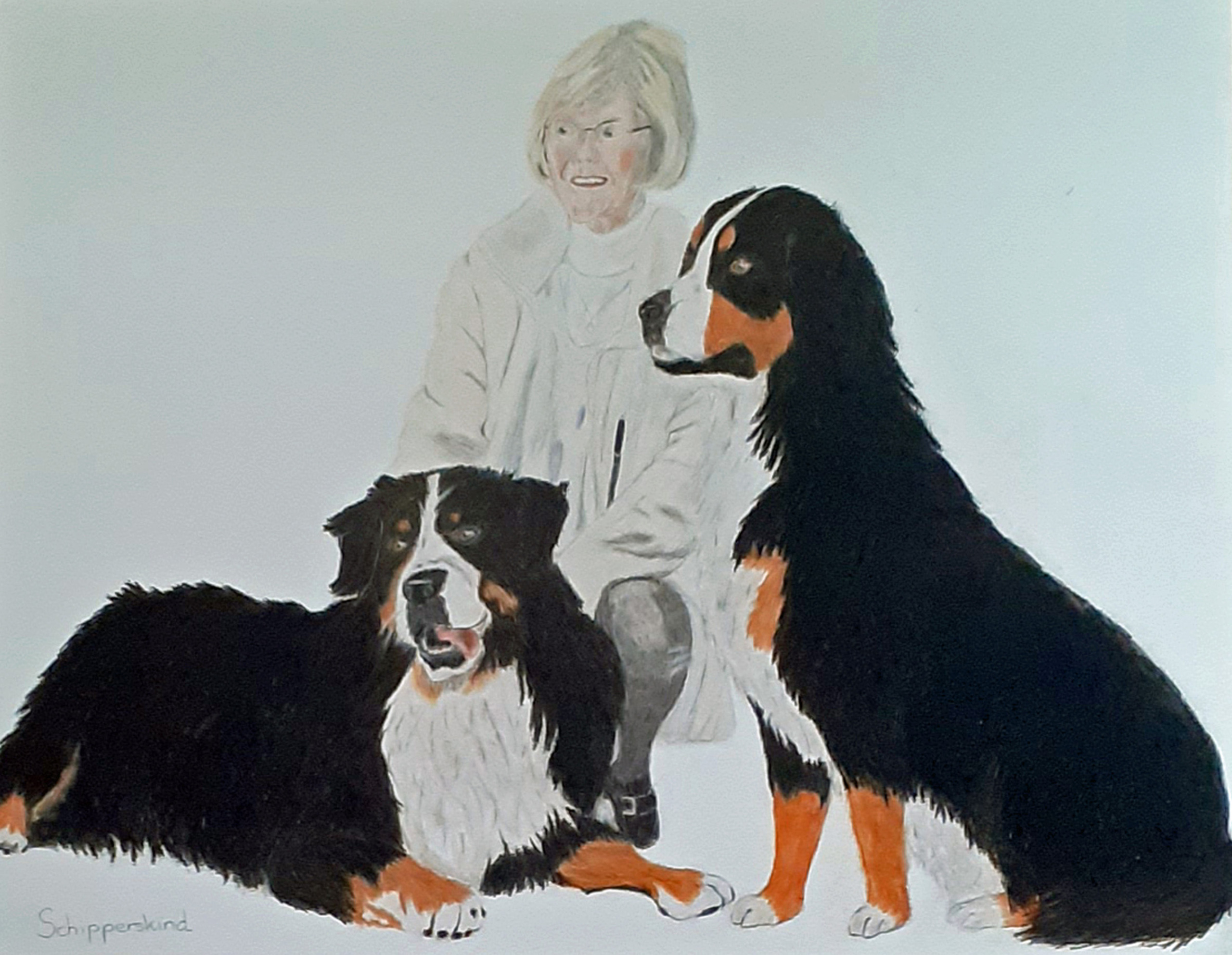 Vrouw Honden Tekening Dame Bernersennen Schipperskind