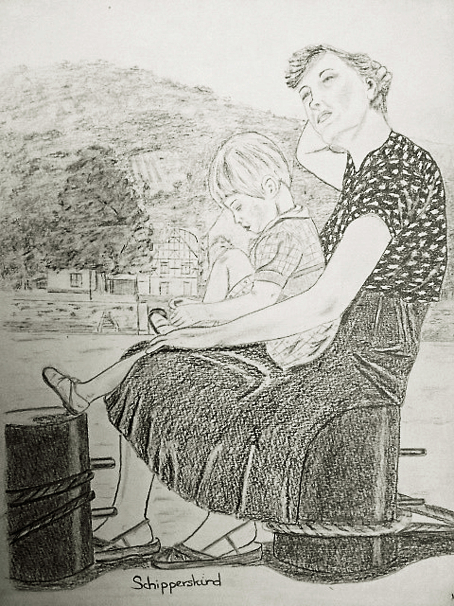 Schepen Schipperskind Vrouw Kindje Bolder Schip Tekening