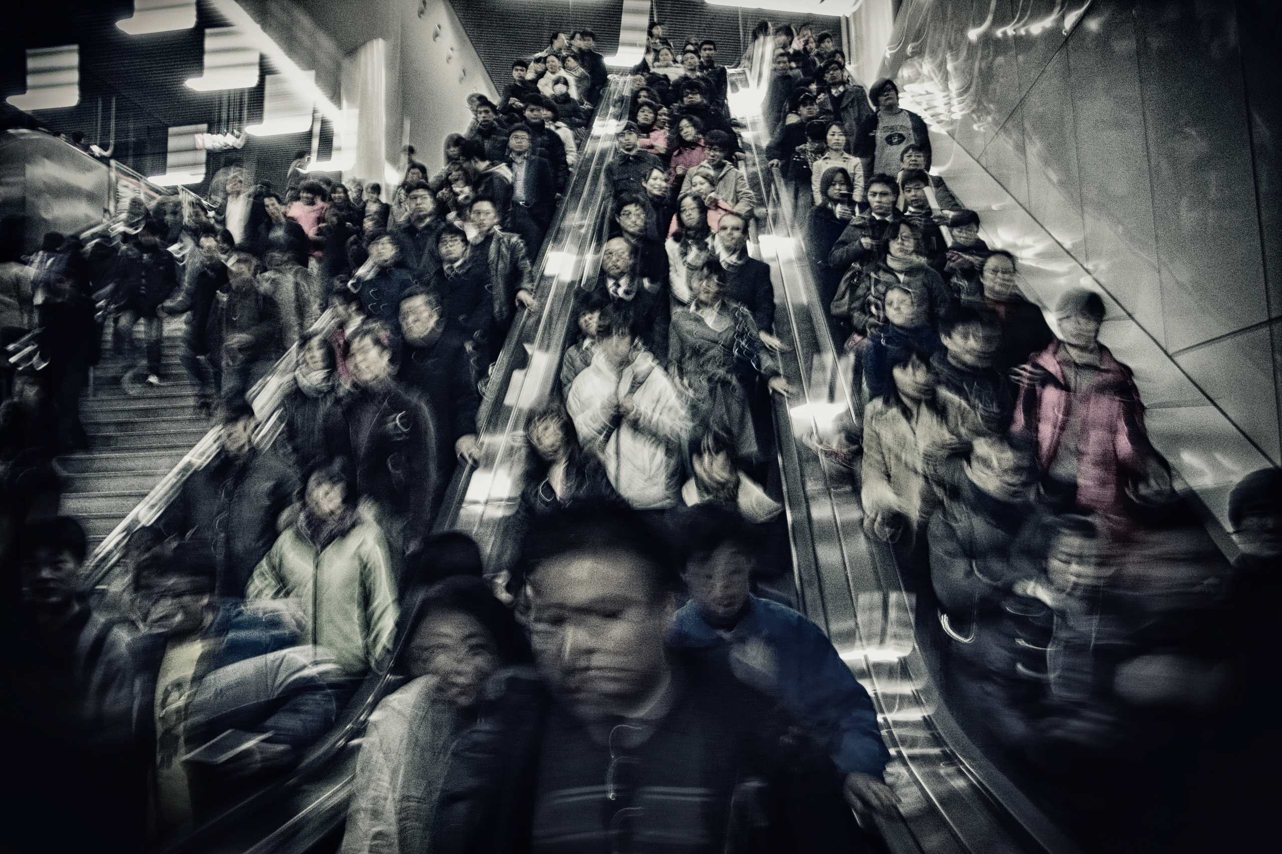 Mensen Shanghai Drukte Roltrap Spitsuur