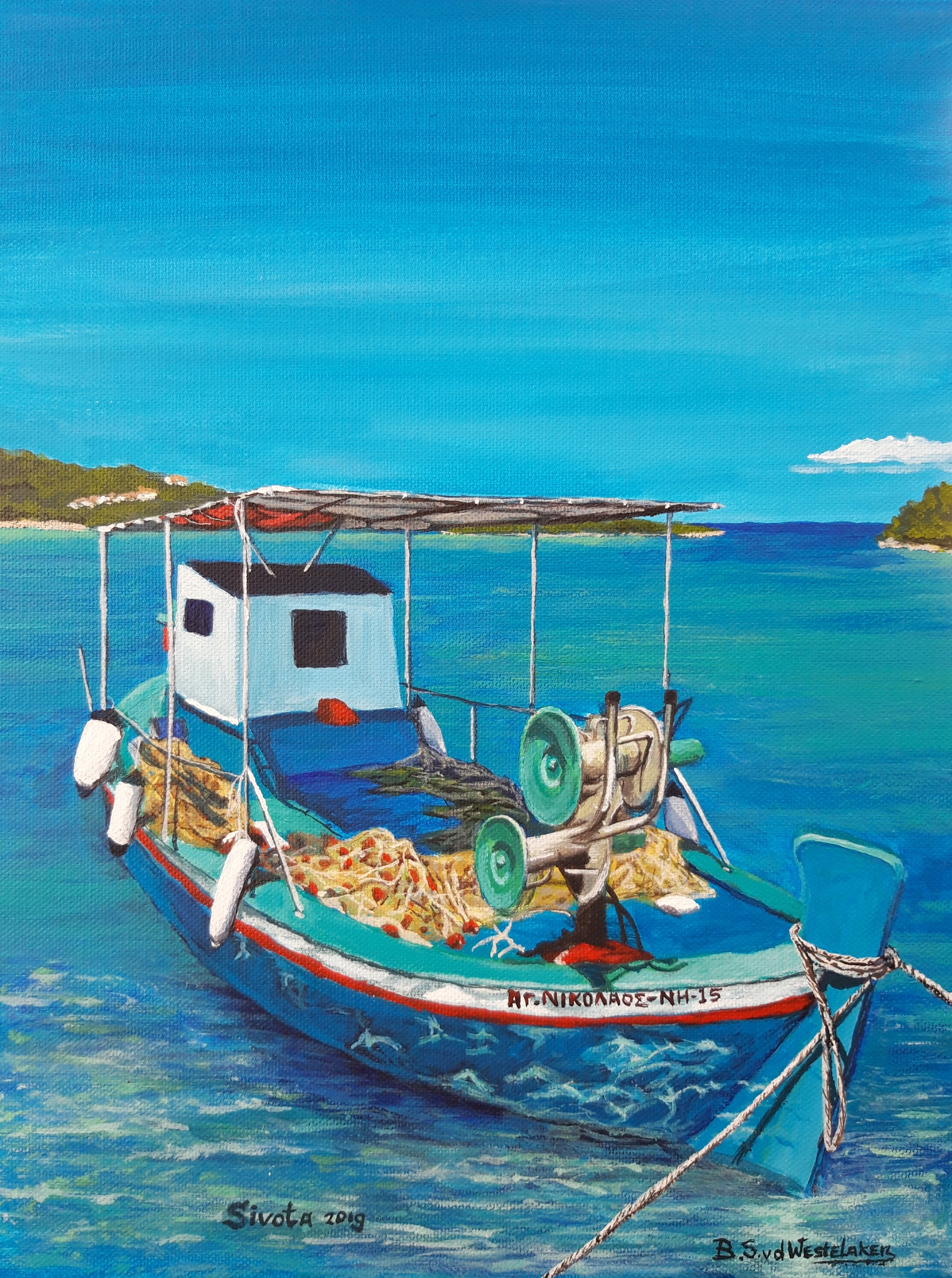 Grieks blauw, vissersboot