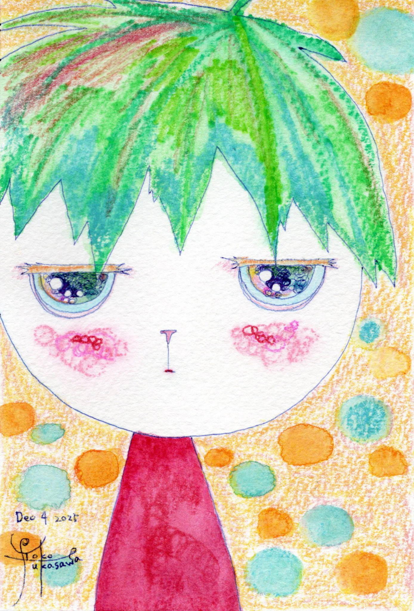 Yoko Fukasawa was born in 1982. 2001-Japan traditional craft department,Metal crafts major 2001-Volkswagen new Beetle - art contest The third place. 2002-TOKYO DOME - Tableware festival Fine work. 2017-And Schizophrenia has been revealed. Her paintings are outsider art. They are characterized by simple shapes and bright colors. She wants you to look at them and relax.