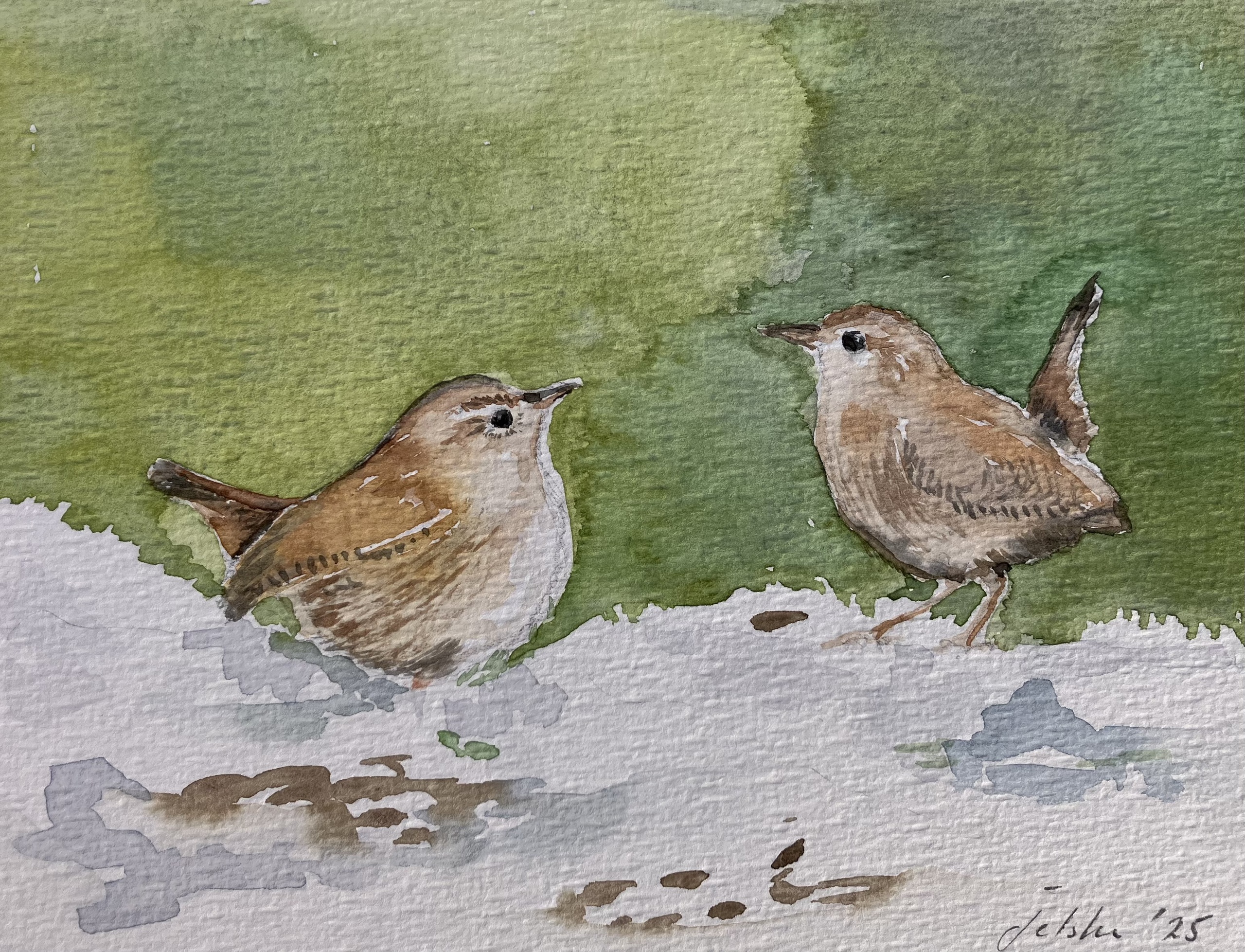 Winterkoninkjes Wren Aquarel