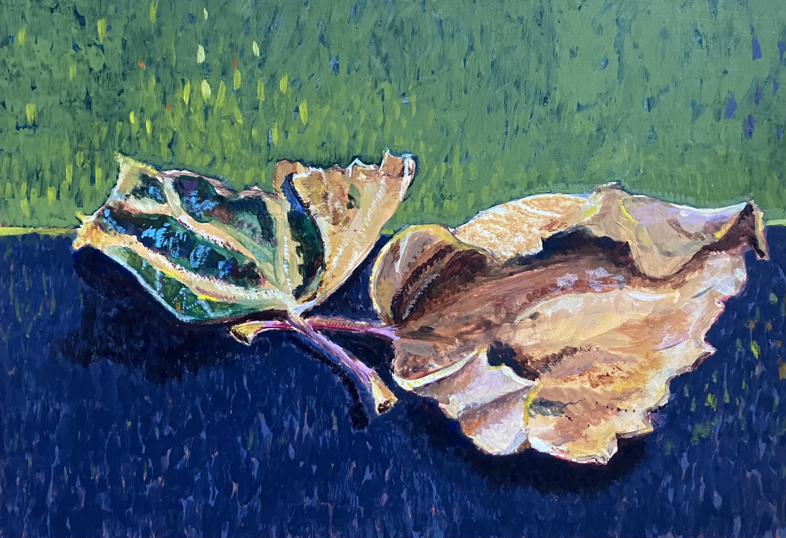 Twee bladeren, schoonheid voor het oprapen.(op karton)
