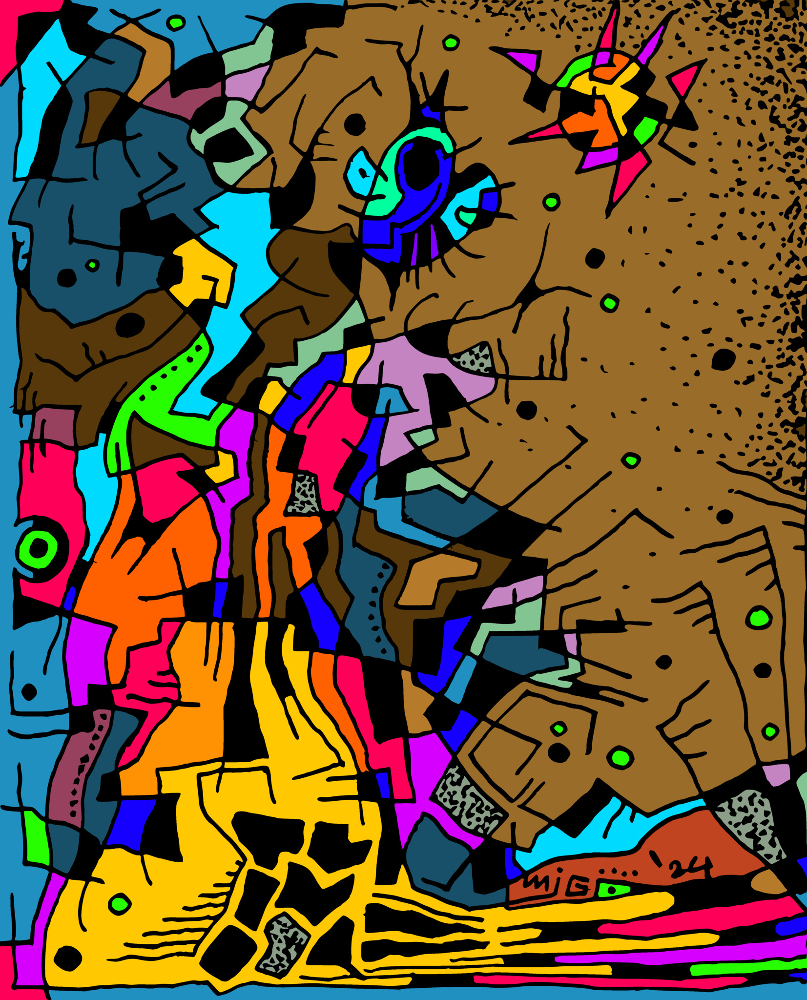 Ontstaan uit een vrije en expressieve verkenning van lijnen en vormen met Oost-Indische inkt. Ingekleurd in 2025, samen met een reeks van andere gelijkwaardige werken, maar ontstaan in 2024.