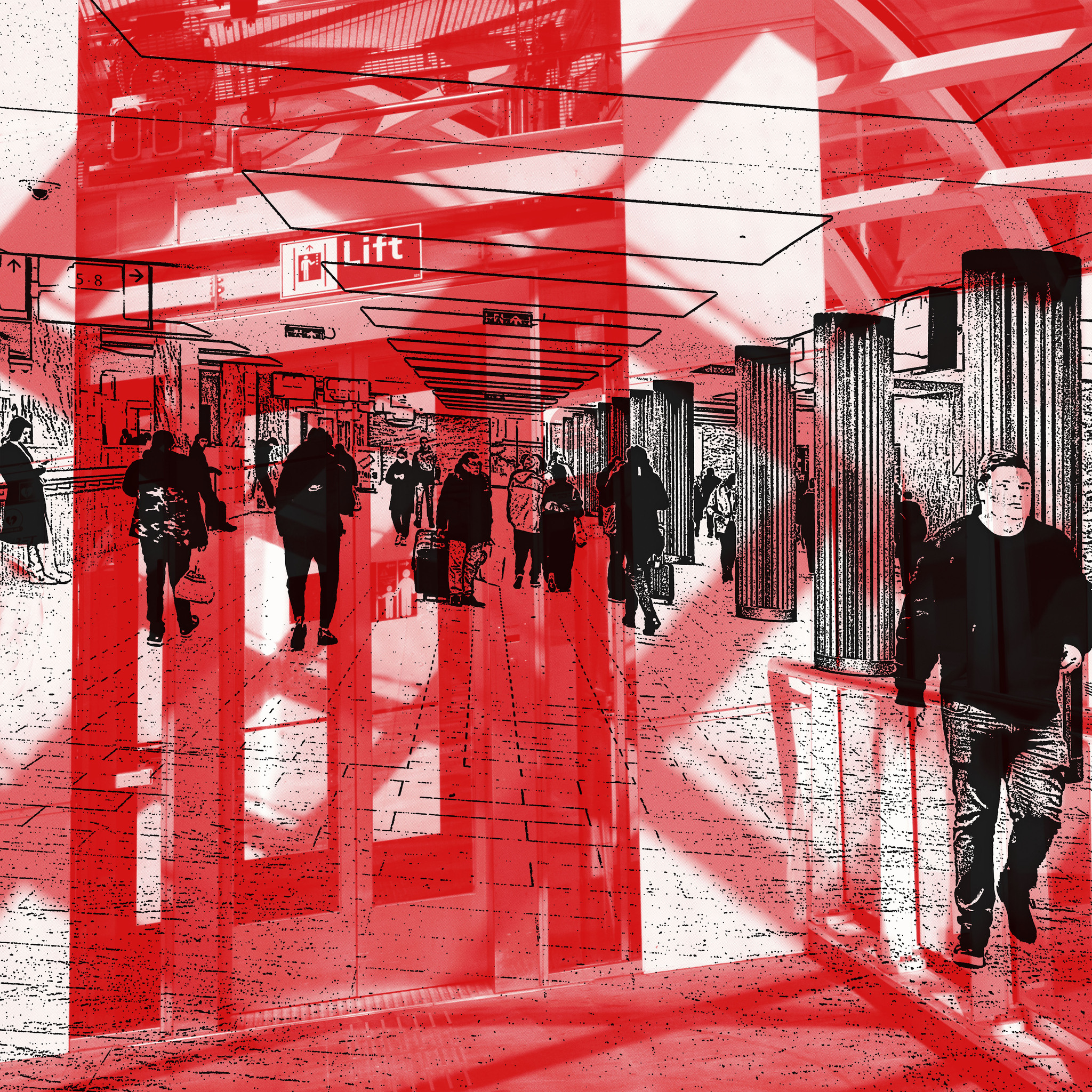 'Passage in het station, Breda' * te koop digitale art print, 50 x 50 cm, prijs: € 365 (inclusief lijst, of op dibond) (diverse formaten zijn mogelijk, naar uw wens - de prijs variëert dan mee)