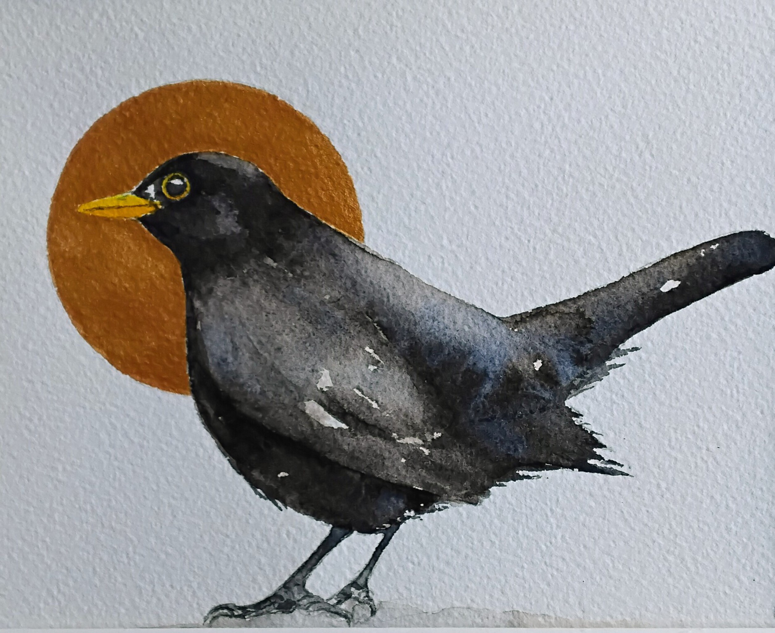 Zon Vogel Aquarel Merel