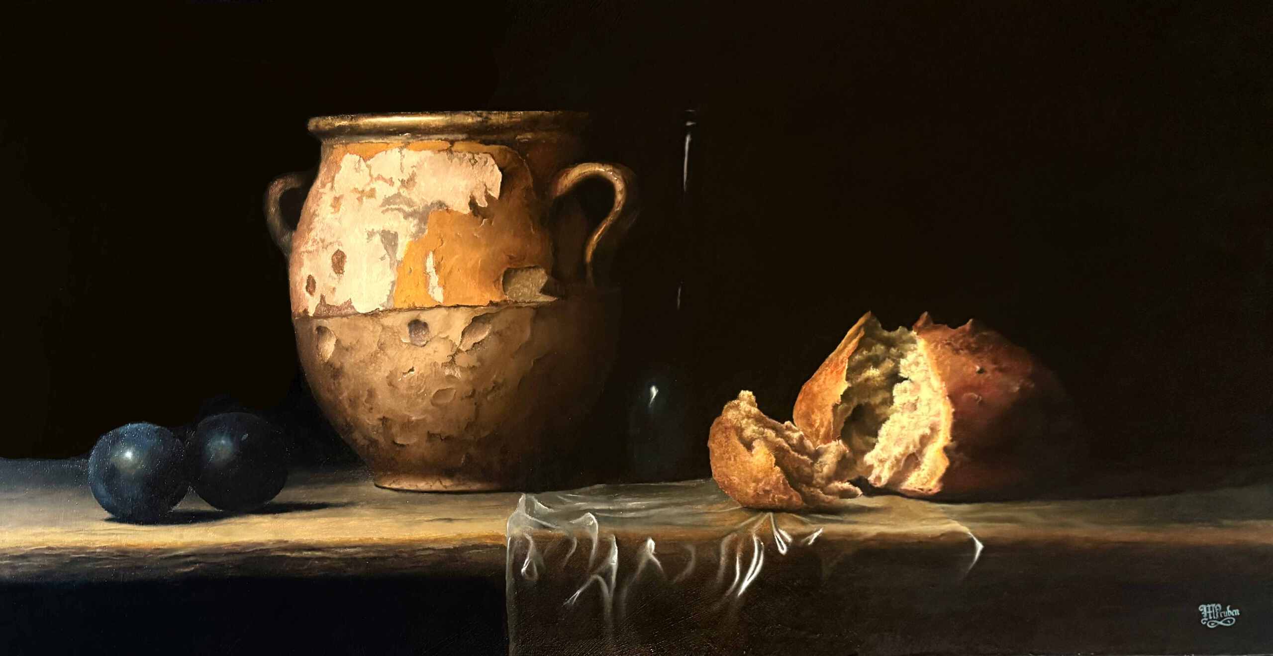 Ik schilder stillevens in olieverf. In licht en schaduw zoek ik naar stilte en betekenis, voorbij het gewone – naar dat wat verborgen ligt.