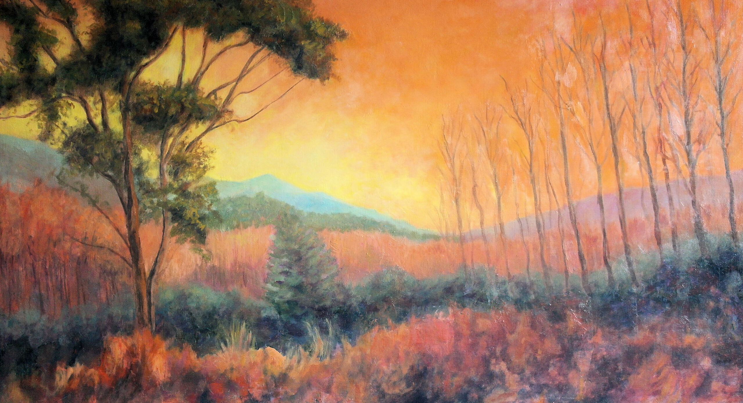 Dit schilderij Warm Landschap toont een harmonieus natuurtafereel waarin warme oranje- en aardtinten samenvloeien met een zachte horizon. De gloed van het licht en de verstilde bomen creëren een rustgevende en tijdloze sfeer. Het werk brengt warmte en diepte in elke ruimte en is bijzonder geschikt voor een woonkamer, kantoor, praktijk of ontvangstruimte. Een sfeervol landschapsschilderij dat uitnodigt tot rust en bezinning.