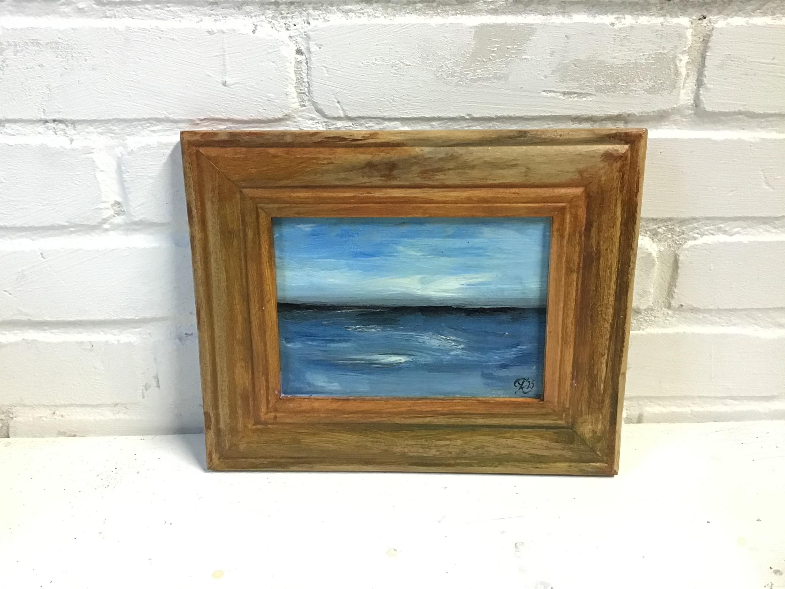 Texels werk. Formaat 20 x 30 cm, inclusief roestbruine lijst.