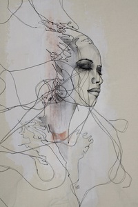 Afgestudeerd Monumentale Vormgeving aan de Academie Beeldende Kunsten Maastricht. (Maastricht Institute of Arts) Vrouwelijke figuren, sensualiteit, kracht en kwetsbaarheid in zwarte draden.