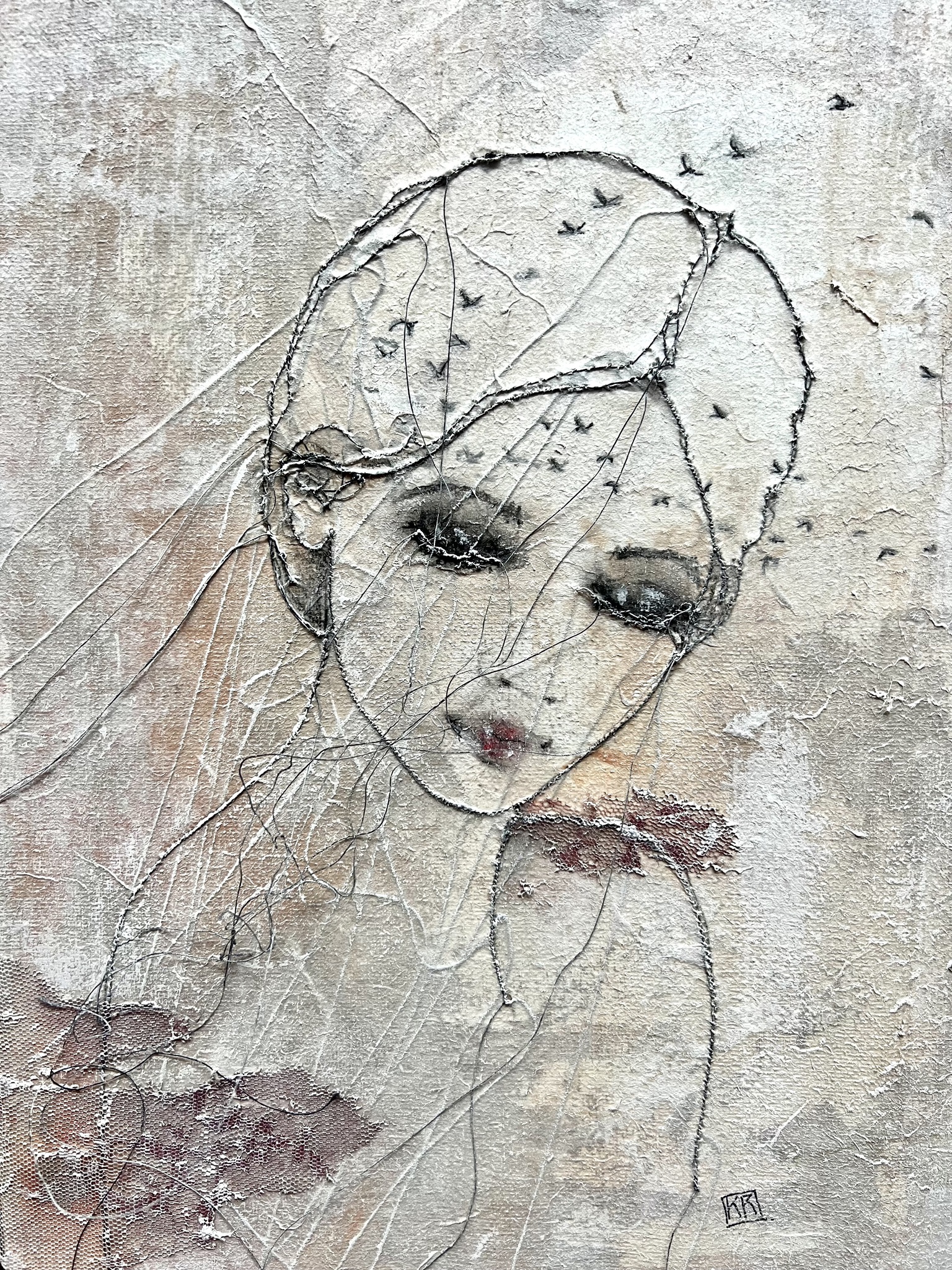 Afgestudeerd Monumentale Vormgeving aan de Academie Beeldende Kunsten Maastricht. (Maastricht Institute of Arts) Vrouwelijke figuren, sensualiteit, kracht en kwetsbaarheid in zwarte draden.