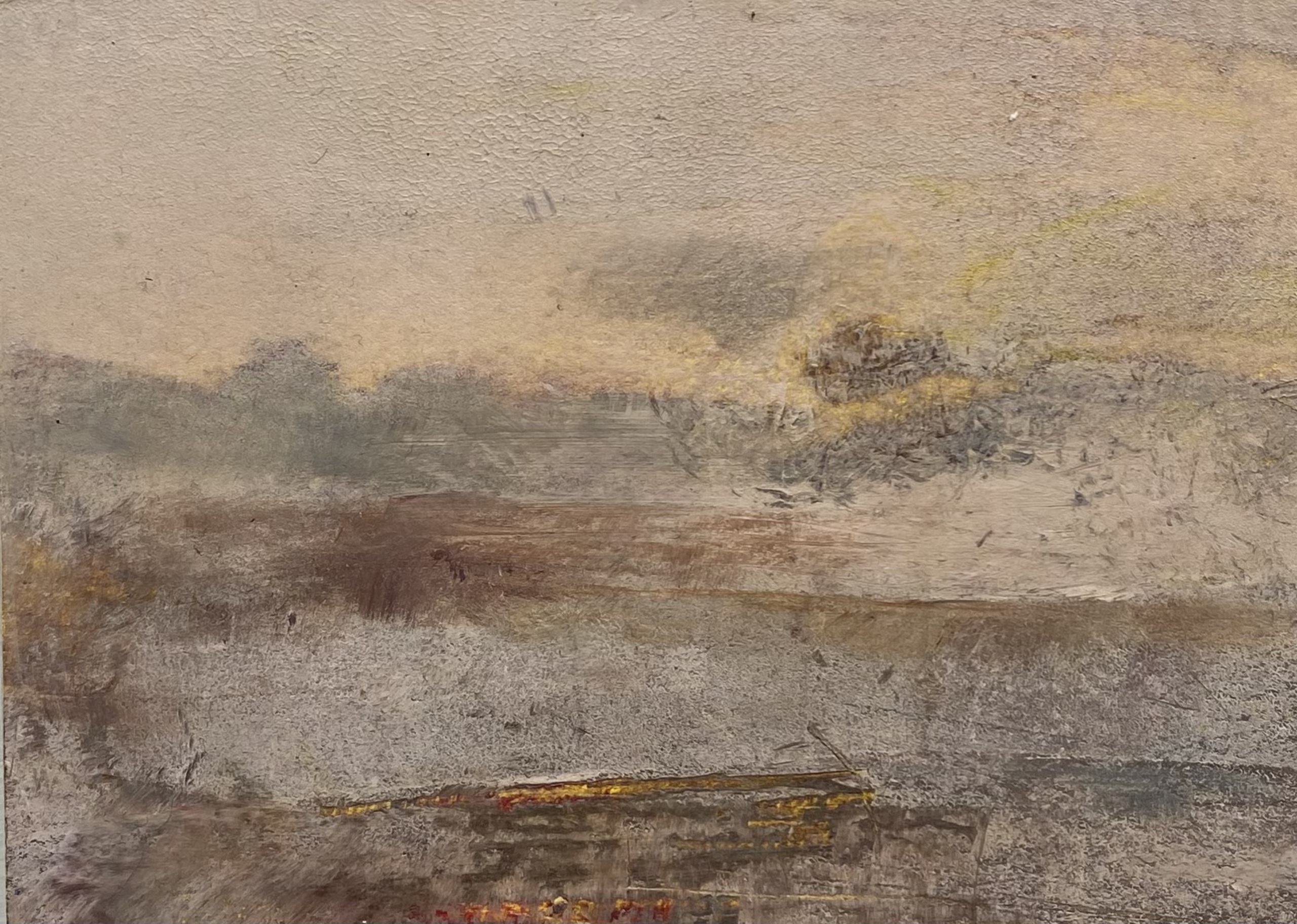 Olieverf en Coldwax op papier, op 3 cm dik multiplex gelijmd