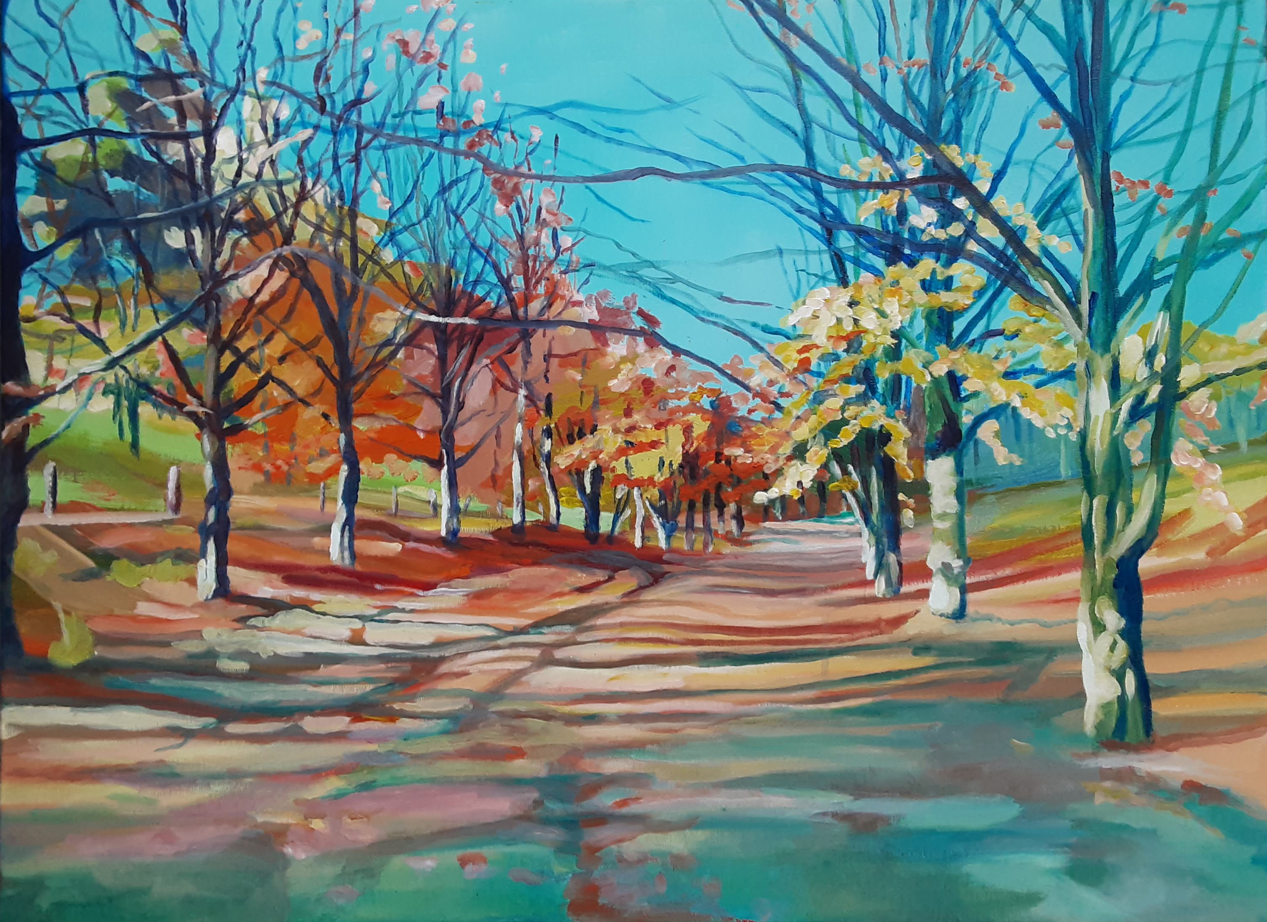 Zulke mooie kleuren.. En de glooiing, daarop raak ik nooit uitgekeken. Zo leuk, mensen die me het zagen schilderen herkennen de plek.