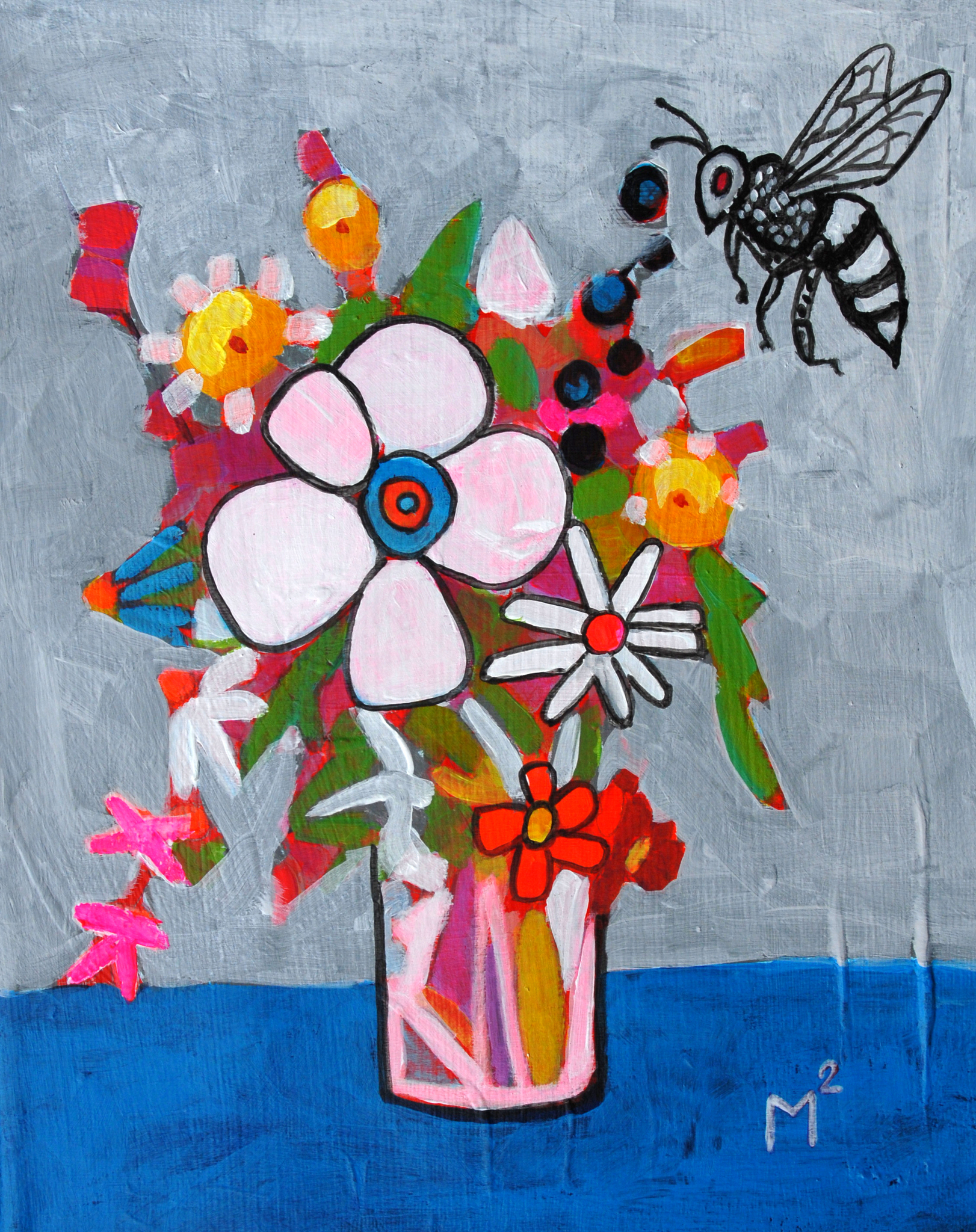 Boeket bloemen met bij.