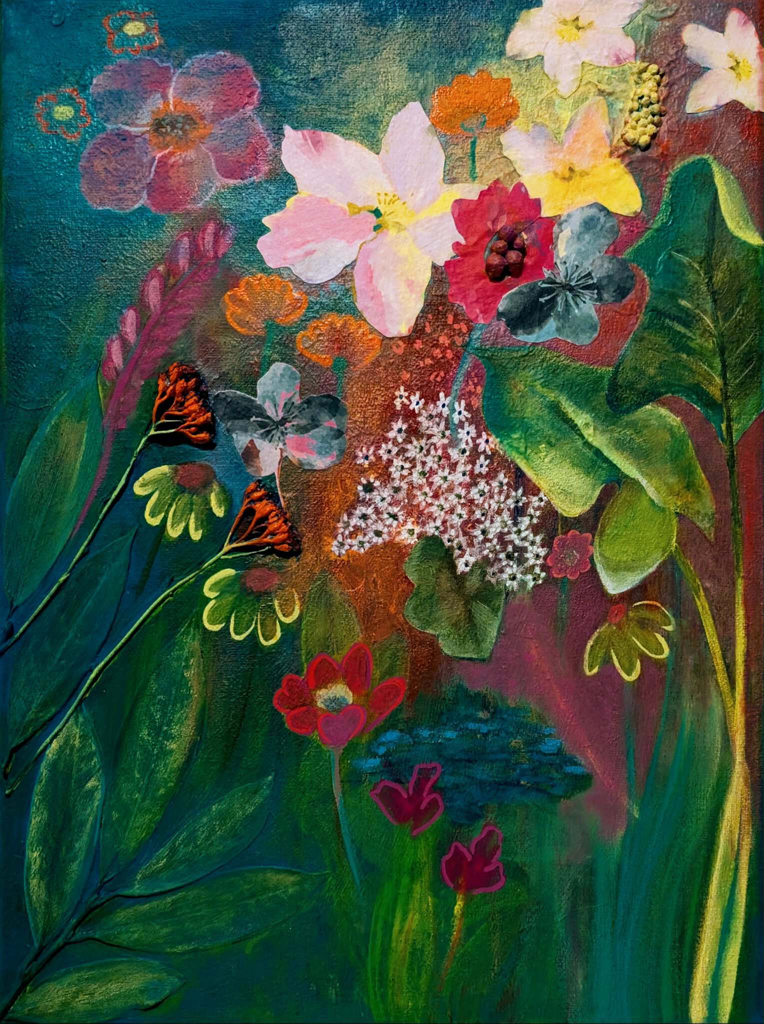 Schilderij Acryl Mixed Media Bloemen Kleurrijk Realistisch Linnen