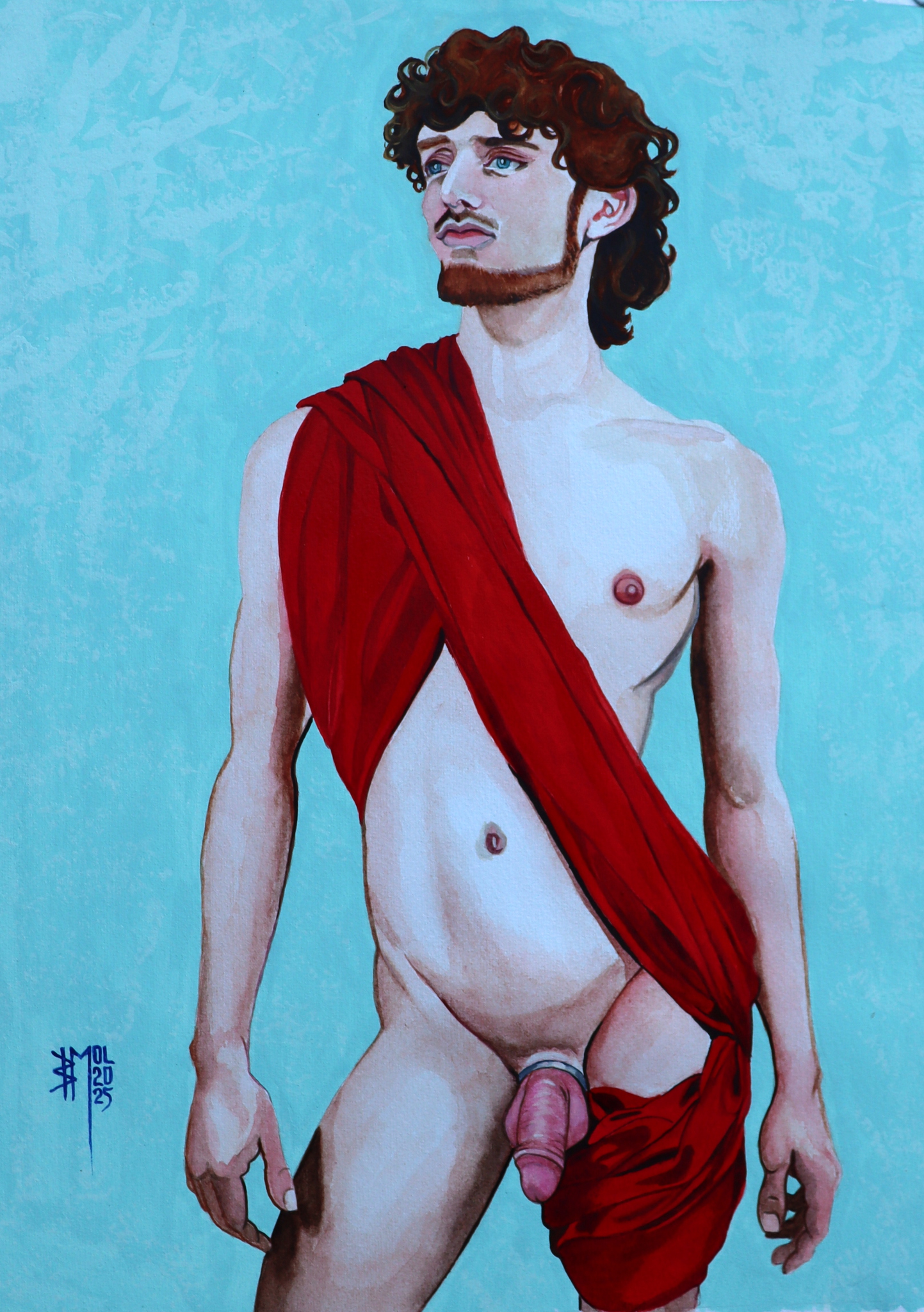 Man David Malemodel Mannelijk Naakt Nude Bastiaanmolart Bastiaanmol Dutchartist Rotterdam Illustratie Illustrator Gay Gaymen Gaymale Gayartist Queerart Gayart Lhbtiq Gaymalemodel Modelposing Red Rotterdamart Artrotterdam