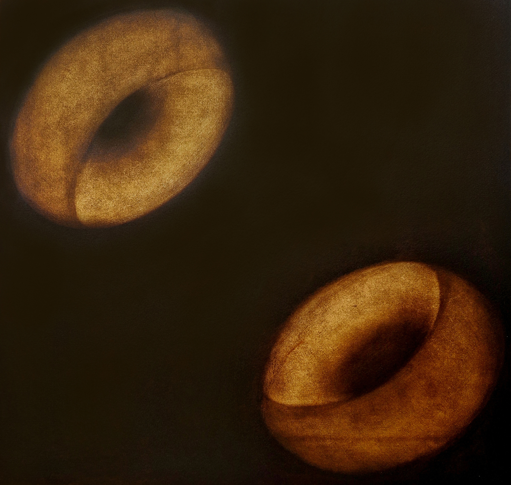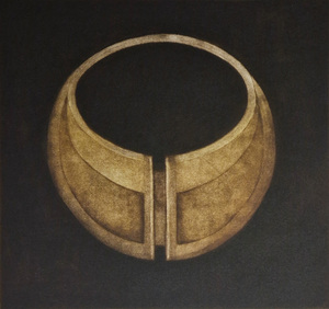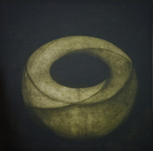 Mezzotint, gedrukt in gelimiteerde oplage. Twee halve sferen die met elkaar verbonden zijn.