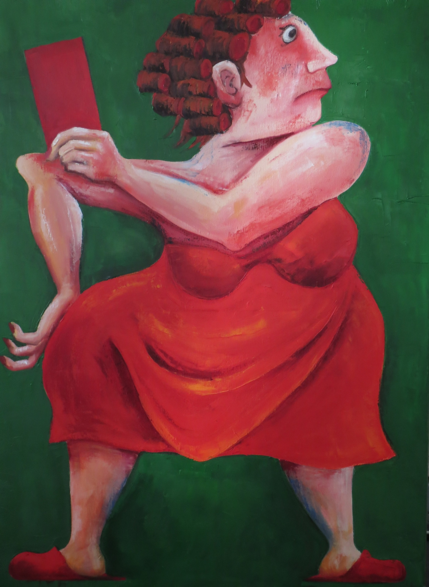 In mijn werk probeer ik het alledaagse, de mens met al zijn gedoe, te vangen in een moment. Daarbij maak ik bewust gebruik van de ondergrond waarop ik schilder en ben ik op zoek naar de dialoog tussen waar het over gaat en waar het op geschilderd is. Hiervoor gebruik ik kleur, compositie en experimenteer ik met het materiaal van de ondergrond.