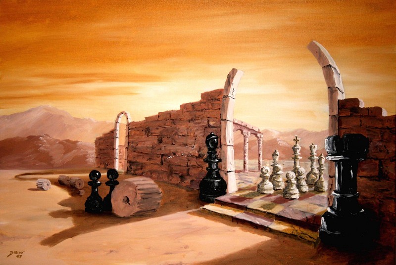 Book cover for 'The Art of Chess' by Lev Aptekar Painting is of complete cover - i.e. it wraps around the spine and back also.