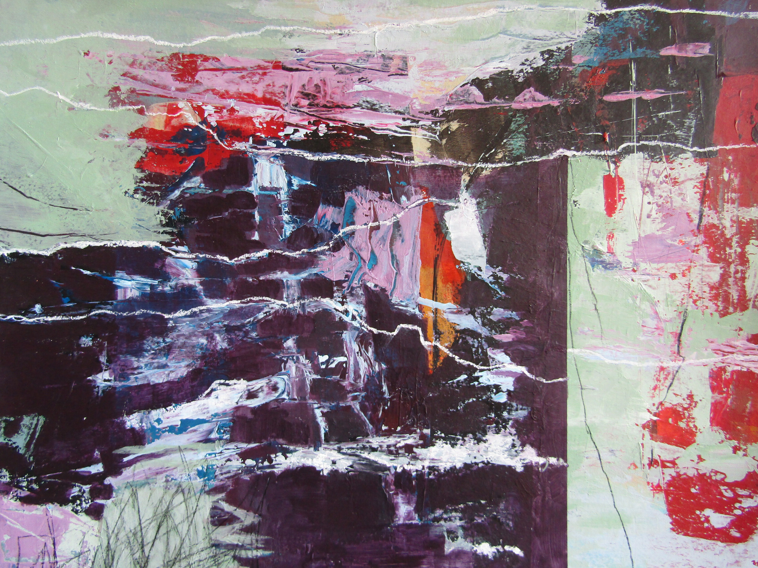 Paars Wit Groen Rood Landschappelijk Abstract Acryl Papierdrager Poëtisch Lyrisch Dynamisch Kleurrijk