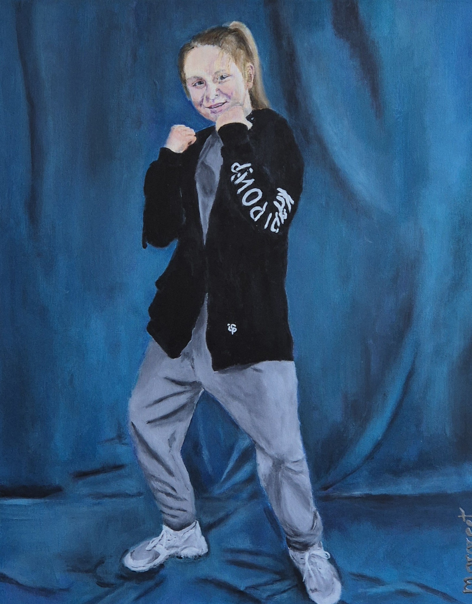 Dit meisje heb ik in opdracht van mijn onze buurvrouw geschilderd. Zij vond deze foto van haar kleindochter zo leuk, daat ze haar graag op doek wilde hebben.