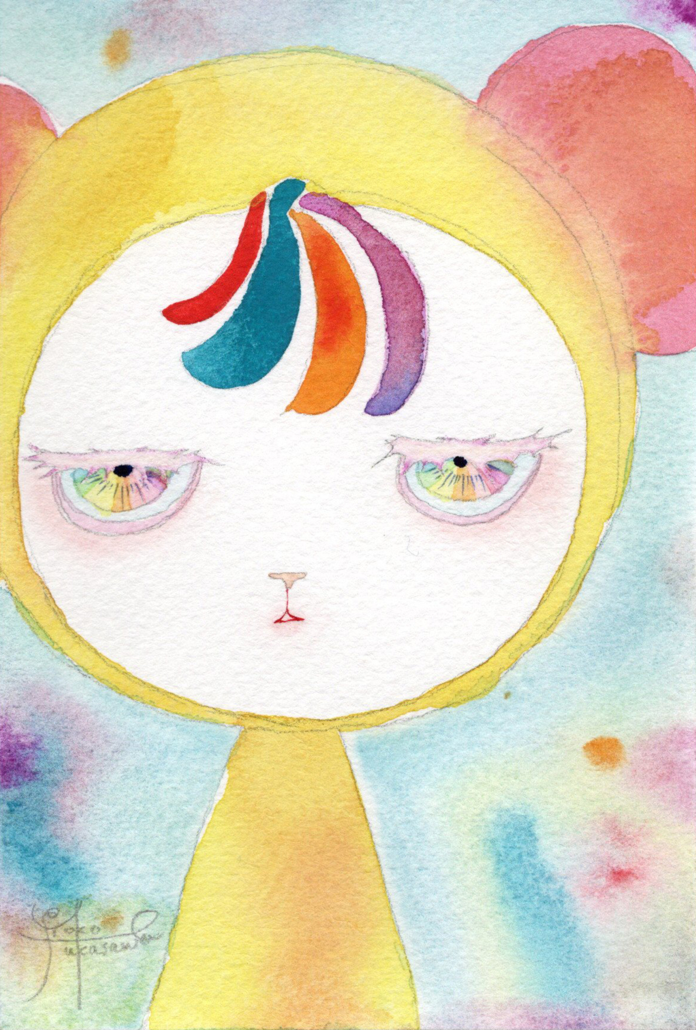 Yoko Fukasawa was born in 1982. 2001-Japan traditional craft department,Metal crafts major 2001-Volkswagen new Beetle - art contest The third place. 2002-TOKYO DOME - Tableware festival Fine work. 2017-And Schizophrenia has been revealed. Her paintings are outsider art. They are characterized by simple shapes and bright colors. She wants you to look at them and relax.