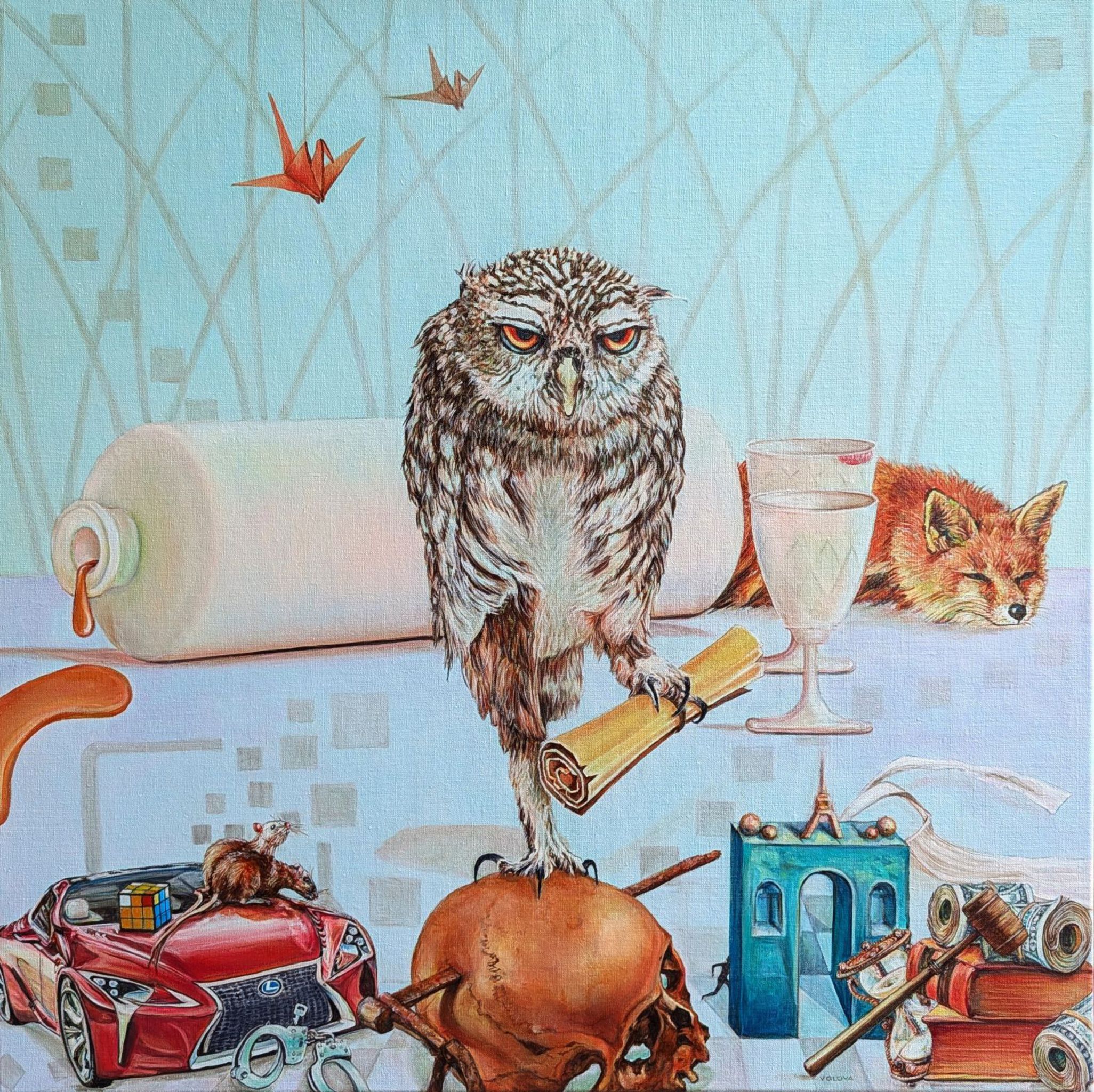 Uil Realisme Oielverf Groen Stillevens Dieren Scene
