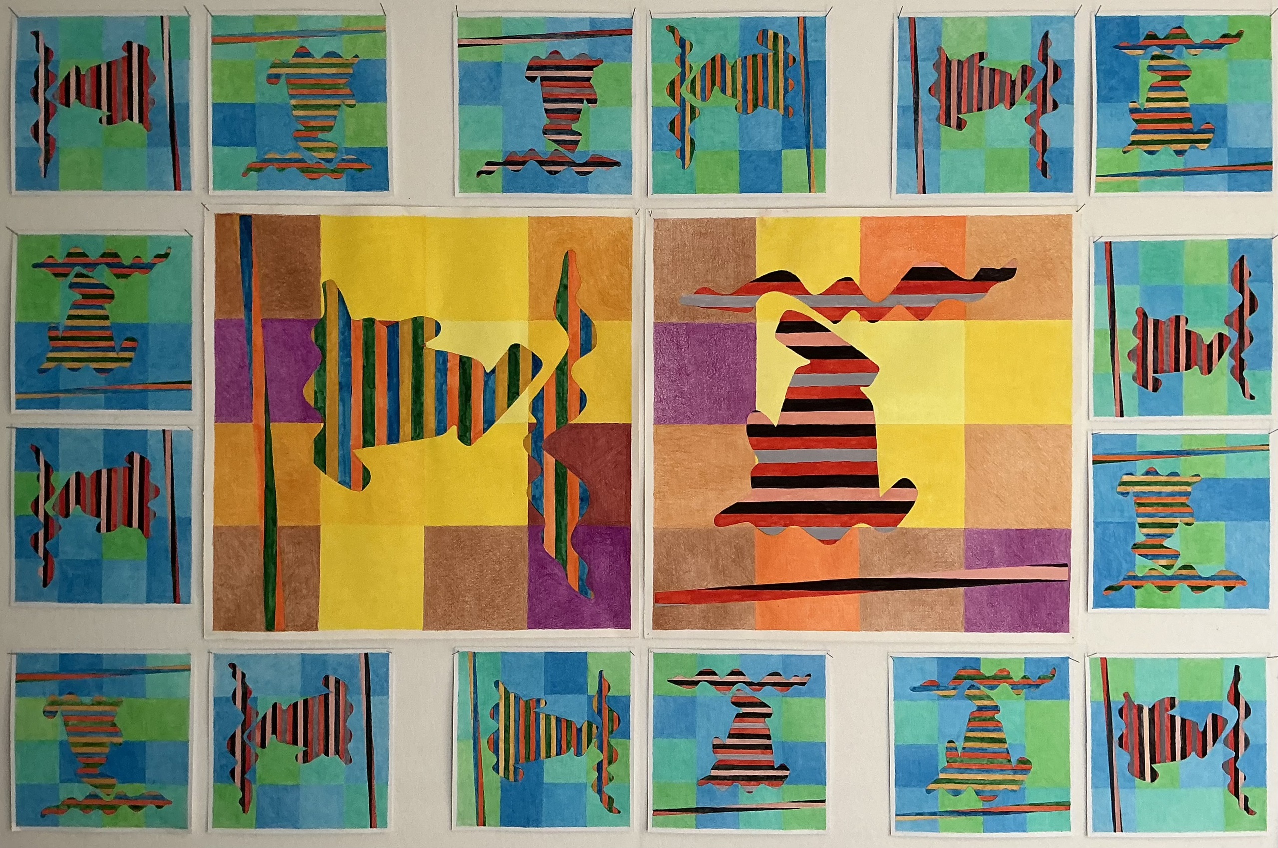 collage bestaand uit 18 potlood/waterverf tekeningen, atelier Arnhem