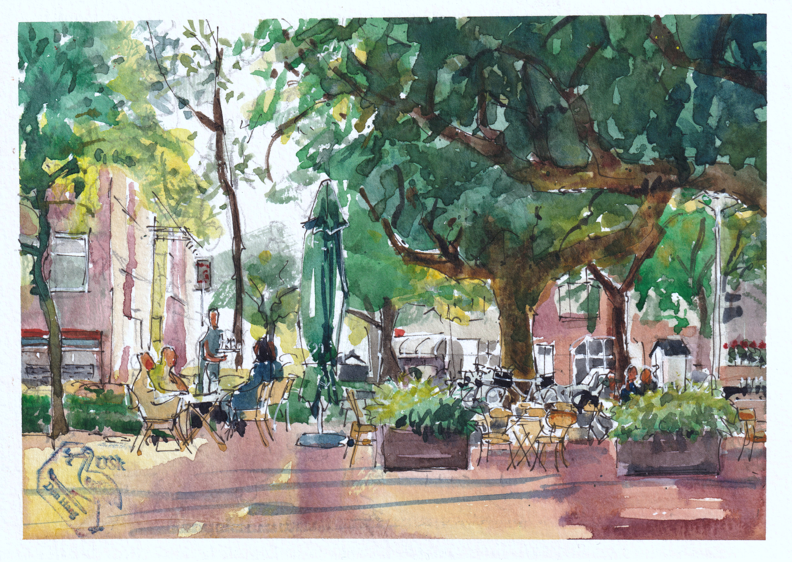 Een terrasje op het Valkenbosplein in Den Haag. Aangenaam tot en met!