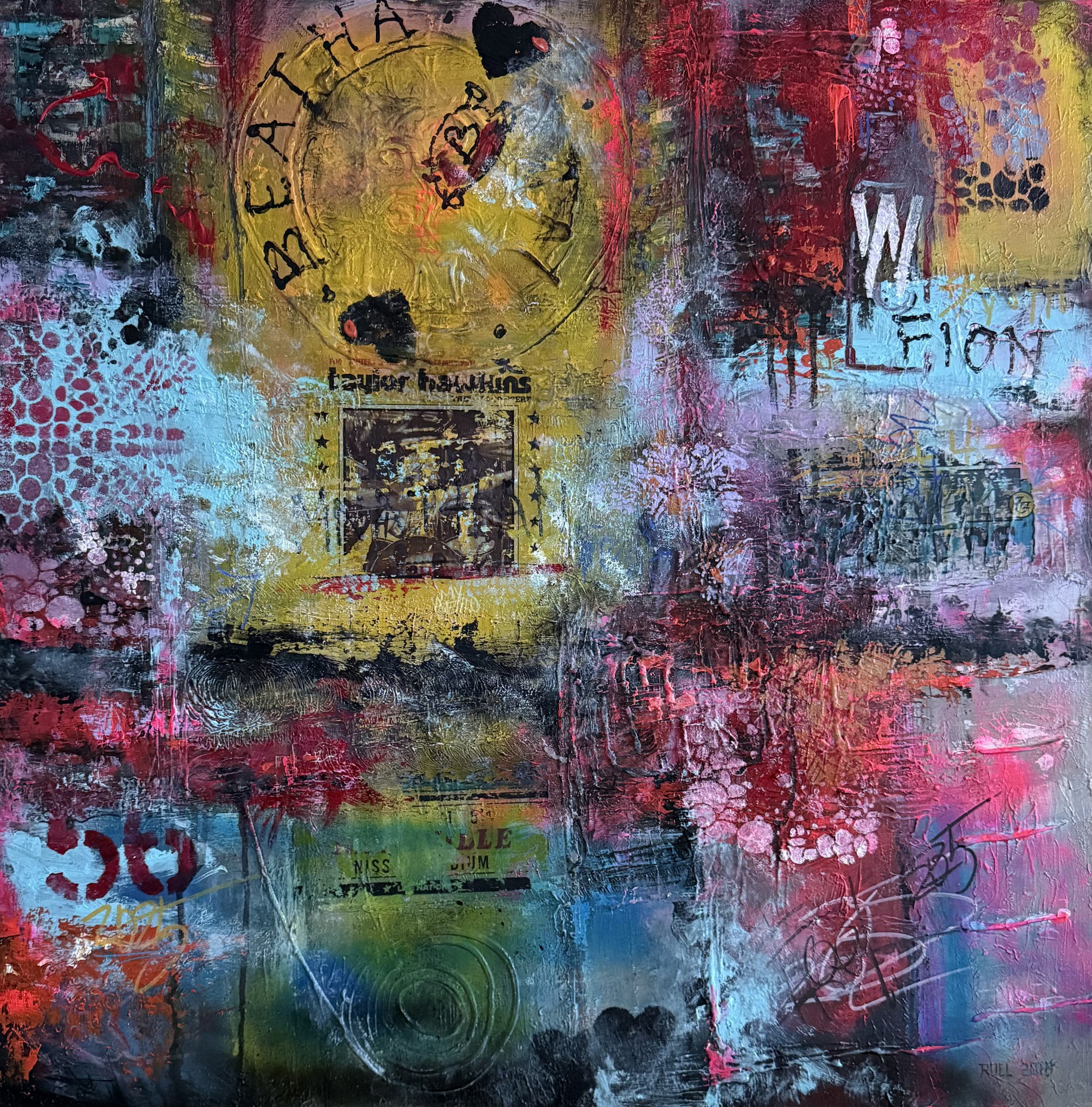 Roel van de Grift (1968). Haalt zijn inspiratie uit natuur en muziek. Het spelen met kleur, vormen en het toepassen van verschillende technieken leveren kleurrijke werken op.