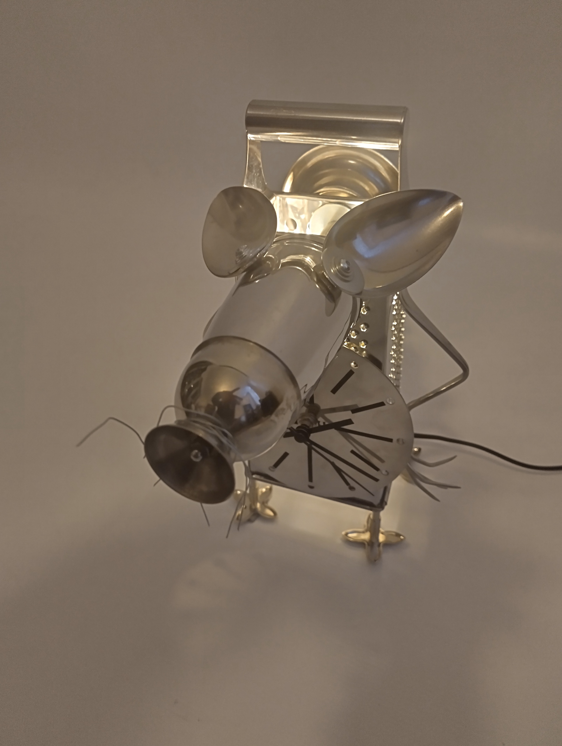 Metalen muis met klok en licht