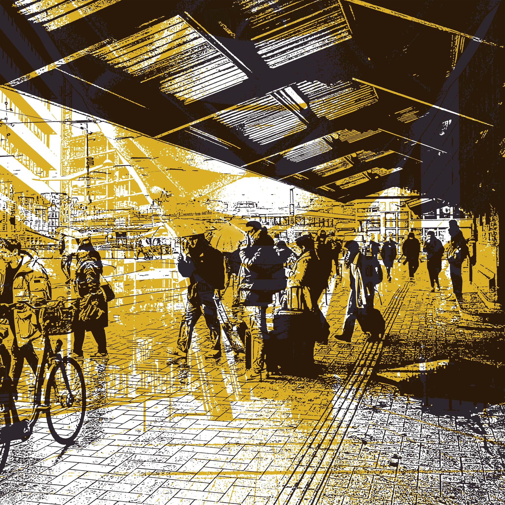 Mensen Art Digitaal Kunst Amsterdam Regen Stad Station Print Straat Digitale Centraal Artprint Prent Prentkunst