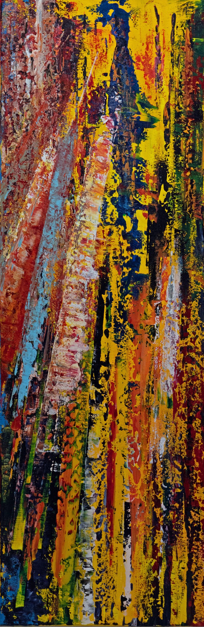 Zowel in Dusseldorf als Parijs bezocht ik een tentoonstelling over het werk van Gerhard Richter. Vooral zijn majestueuze abstracte werken spreken me aan, evenals een klein doek met een zeegezicht. Dit drieluik is n.a.v. het zien van zijn werk ontstaan.