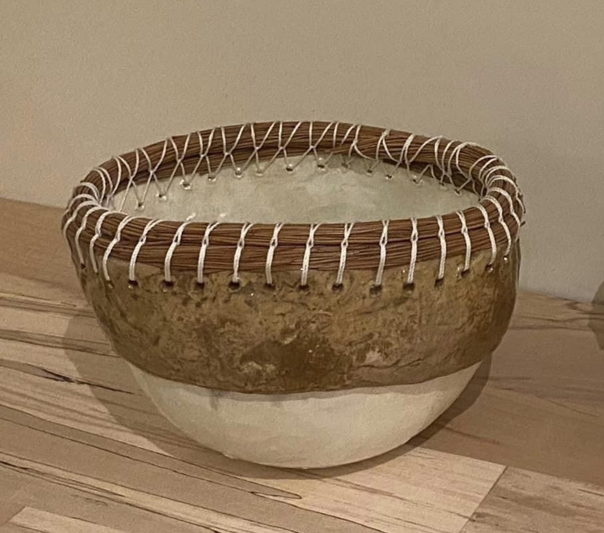 Schaal met omwikkelde dennennaald rand.