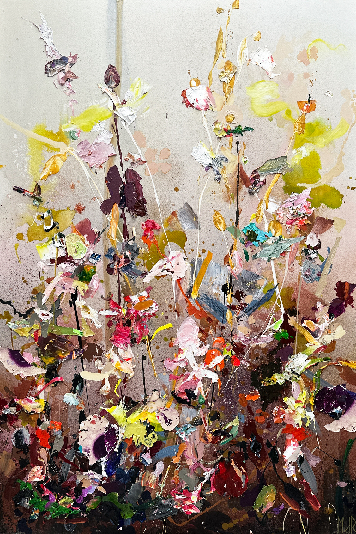 Schilderij Abstract Bloemen Kleurrijk Geabstraheerd Groot Hoog Breed Expressionistisch Expressionisme Bloemenschilderij Ruiter Iets Bloemenveld Martine Fraais Ietsfraais
