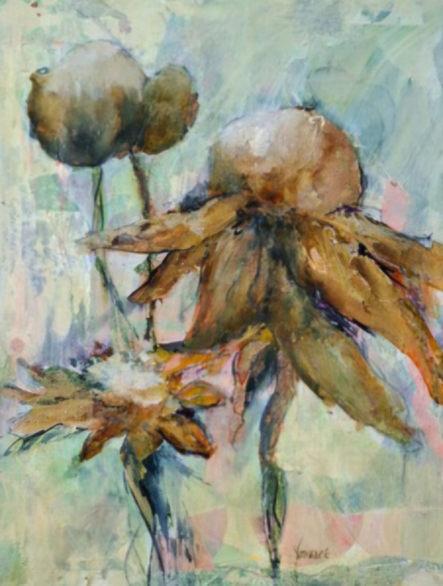 Na jaren schilderen met aquarelverf is Yvonne Siemelink na een aantal jaar overgestapt op werken met acrylverf. Een mooie boom, een detail uit een foto, of een tussendoor gemaakte krabbel kan aanleiding zijn tot een, meestal geabstraheerd, schilderij. Door haar werken in meerdere lagen op te bouwen bereikt zij een specifieke eigenheid in haar werk.