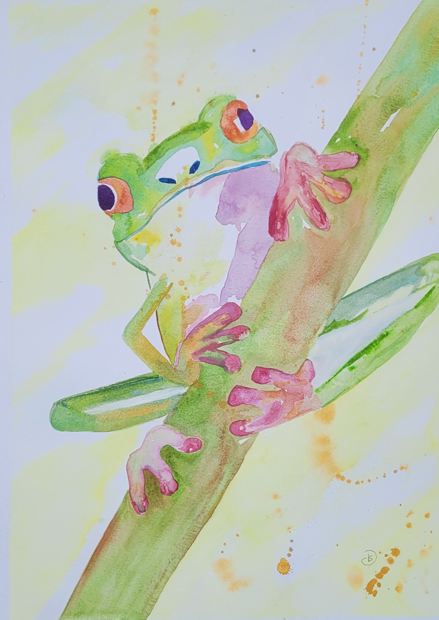 Kikker Groen Tak Silvia Derks Uden Genieten Vrijheid Aquarel