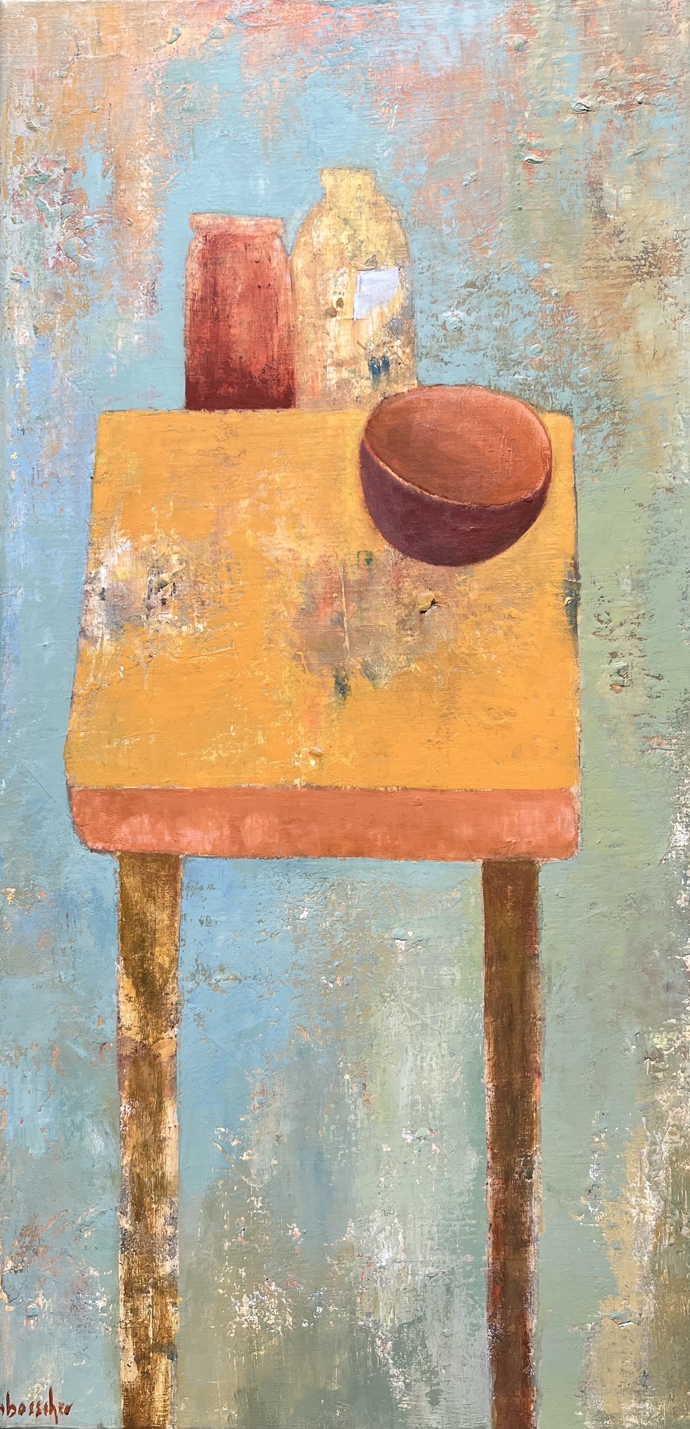 Tafeltje kwetsbaar in zijn eenvoud met de warme kleuren van gezelligheid.