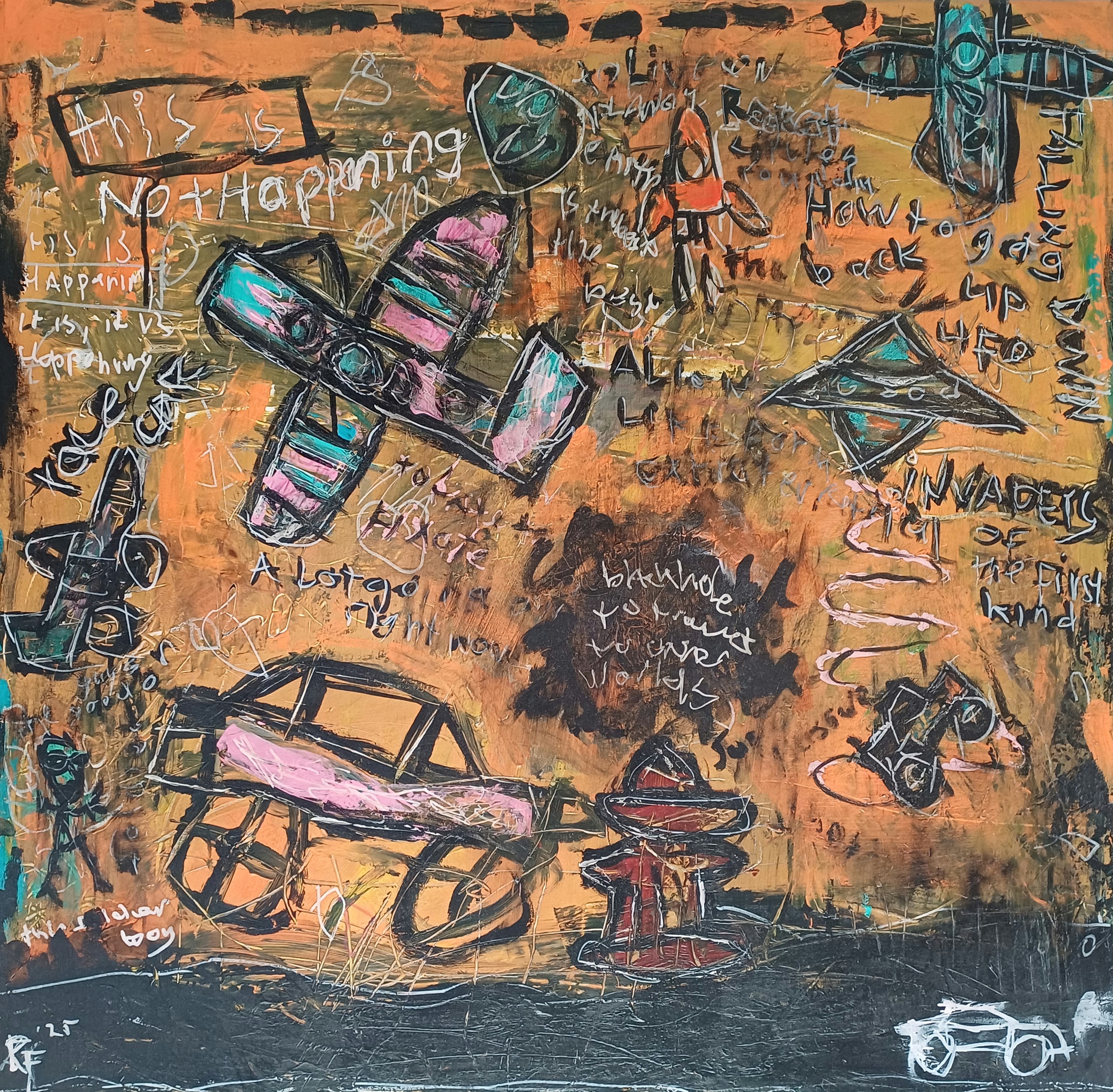 Gek schilderij. From Space, zegt genoeg. hou er van tekst te gebruiken bij mij schilderijen.
